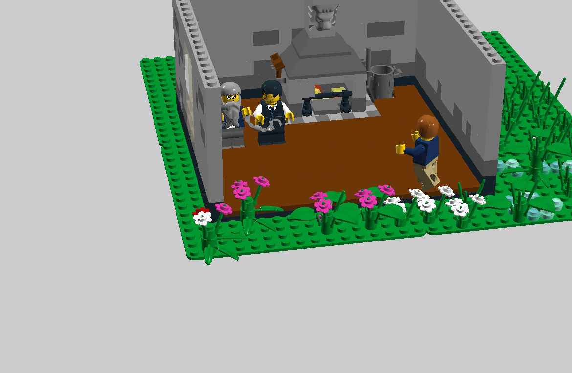 Внутри дома я изобразил Галилея,полицейского,уборщика и камин.