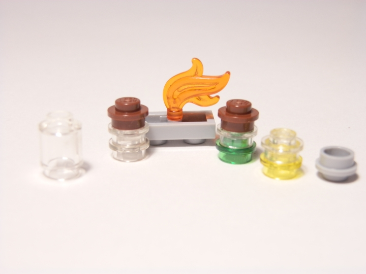 Горелка, пробирки с реагентами и та самая колба.