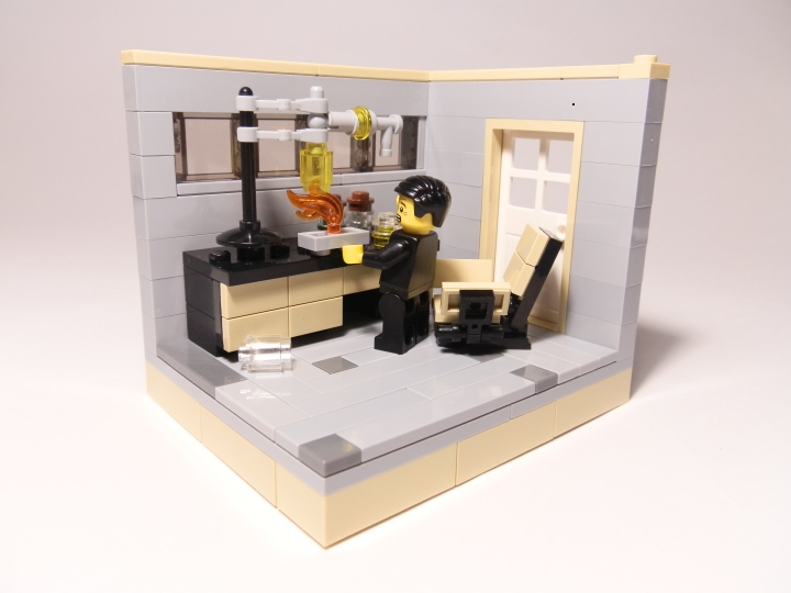 Таки этот момент я и изобразил. Наверняка, у этого везунчика была лаборатория покруче, но я представил себе именно такую, какую собрал. :)