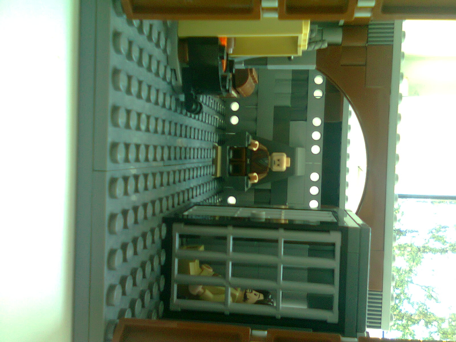 LEGO MOC - Heroes and villians - League of Assassins Lair from the 'Batman:Begins': двери открылись и мы видим клетку , камин и сидящего рас аль гула