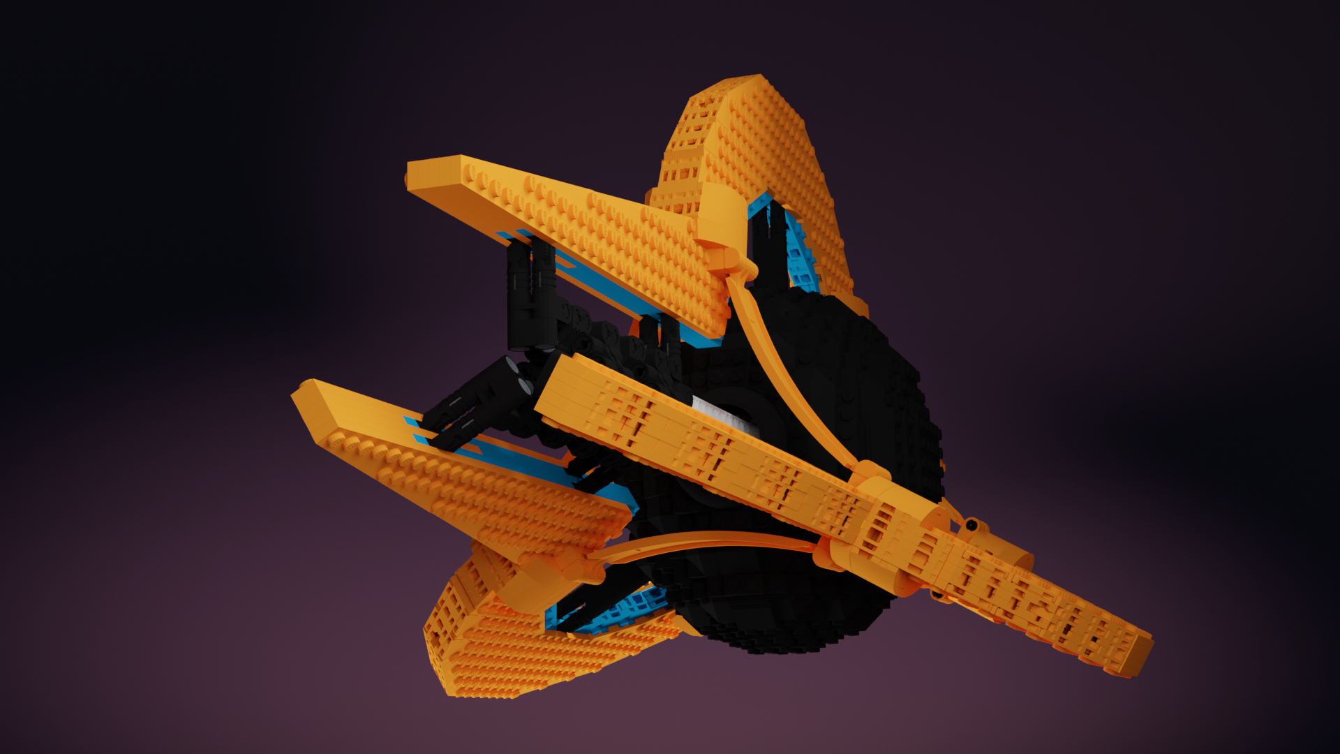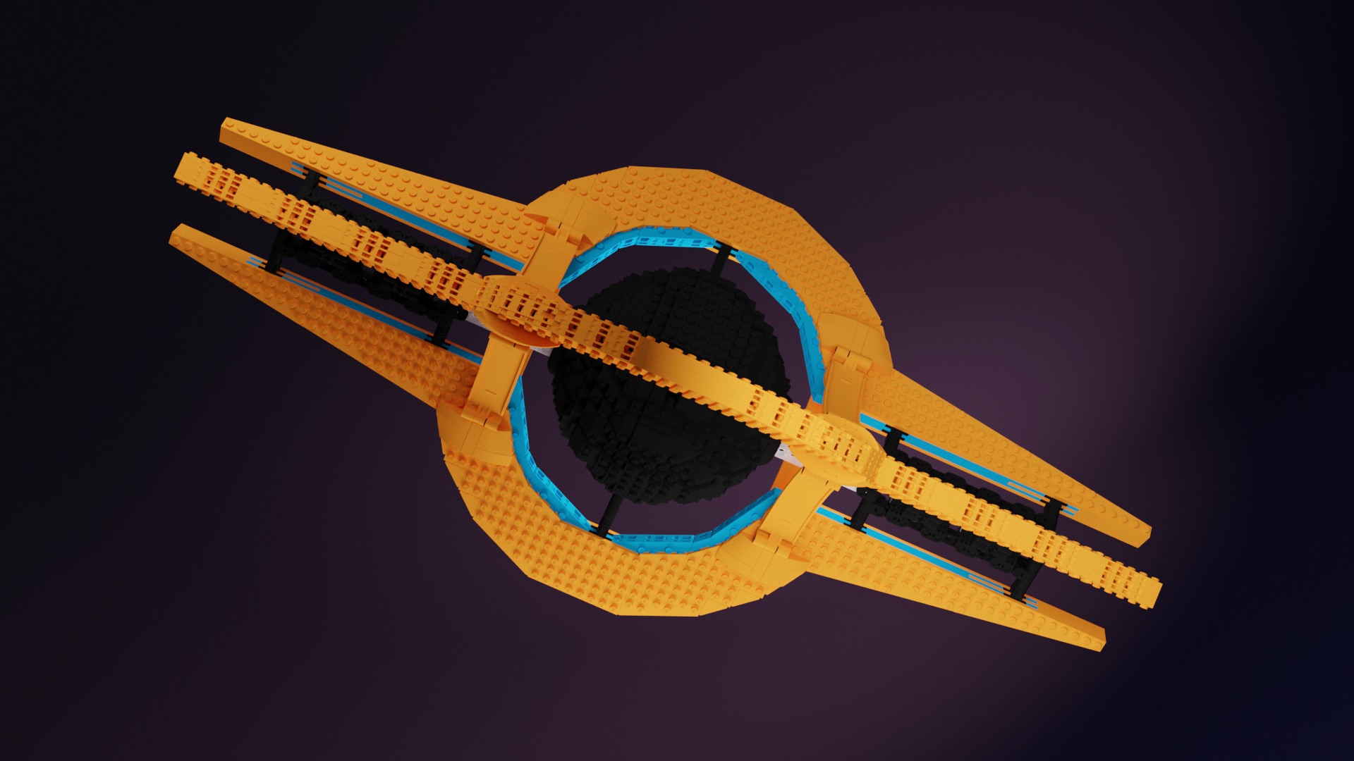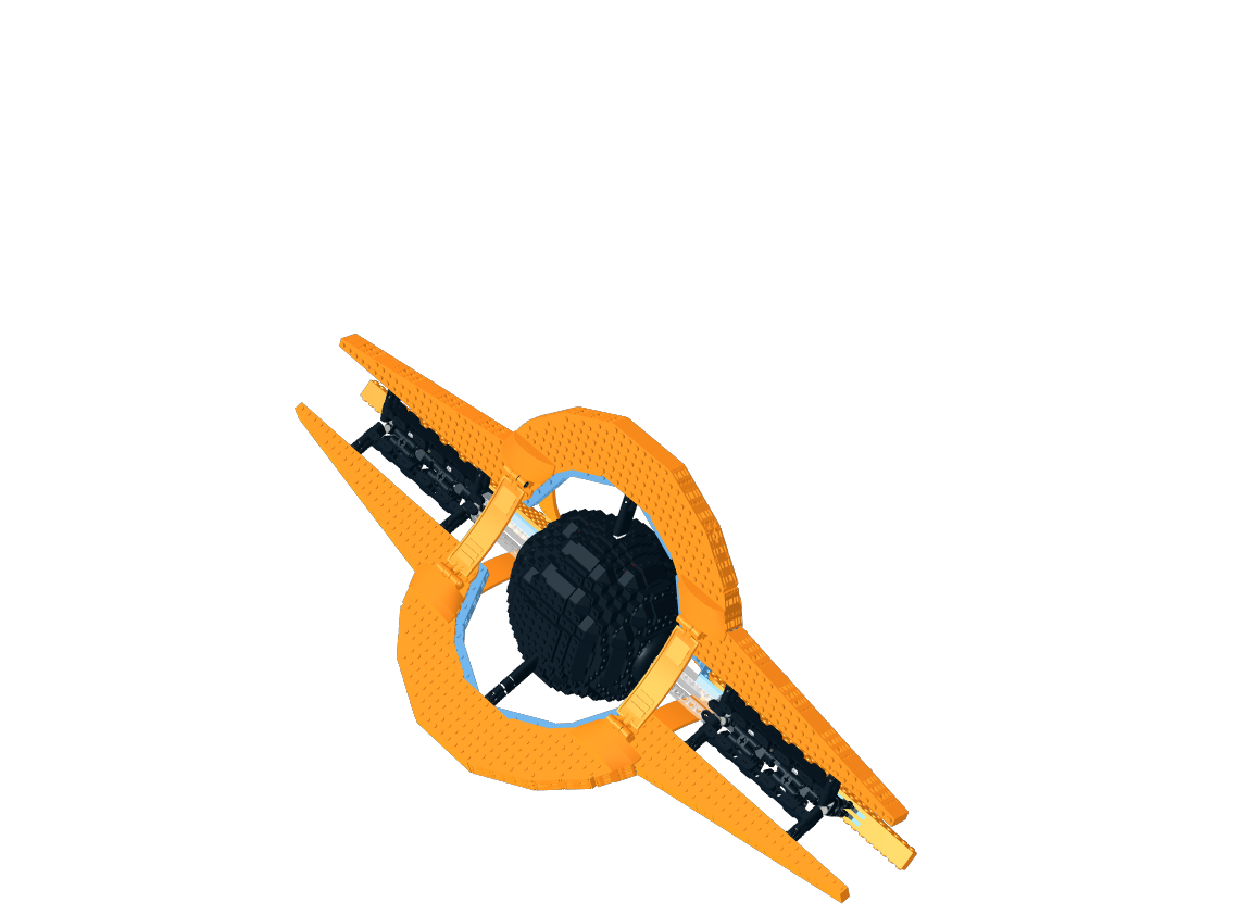 У меня, как у автора работы, возникают такие же трудности. Моей целью было набросать форму с дизайном ЧД, а вот придать ей смысл я так и не смог (хотя это идёт против моих правил) и не успел (как всегда, выложил работу в последние пять минут, ещё и с проблемами столкнулся). Под конец было решено, что это корабль с сингулярным реактором, то есть таки на энергии чёрной дыры (только большой, а не маленькой), да. А вот крылья - это сам корабль.