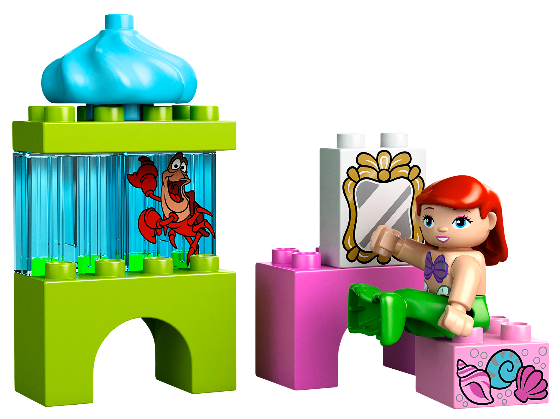 | 1 X Duplo, Brick 1 x 2 x 2 with Krab Sebastian Pattern | Trans-Light Blue |   |  |
