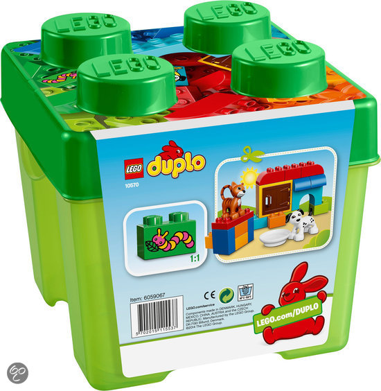 Duplo, Brick 1 x 2 x 2 with Dog and Cat with Food Bowl and Number 1 Pattern