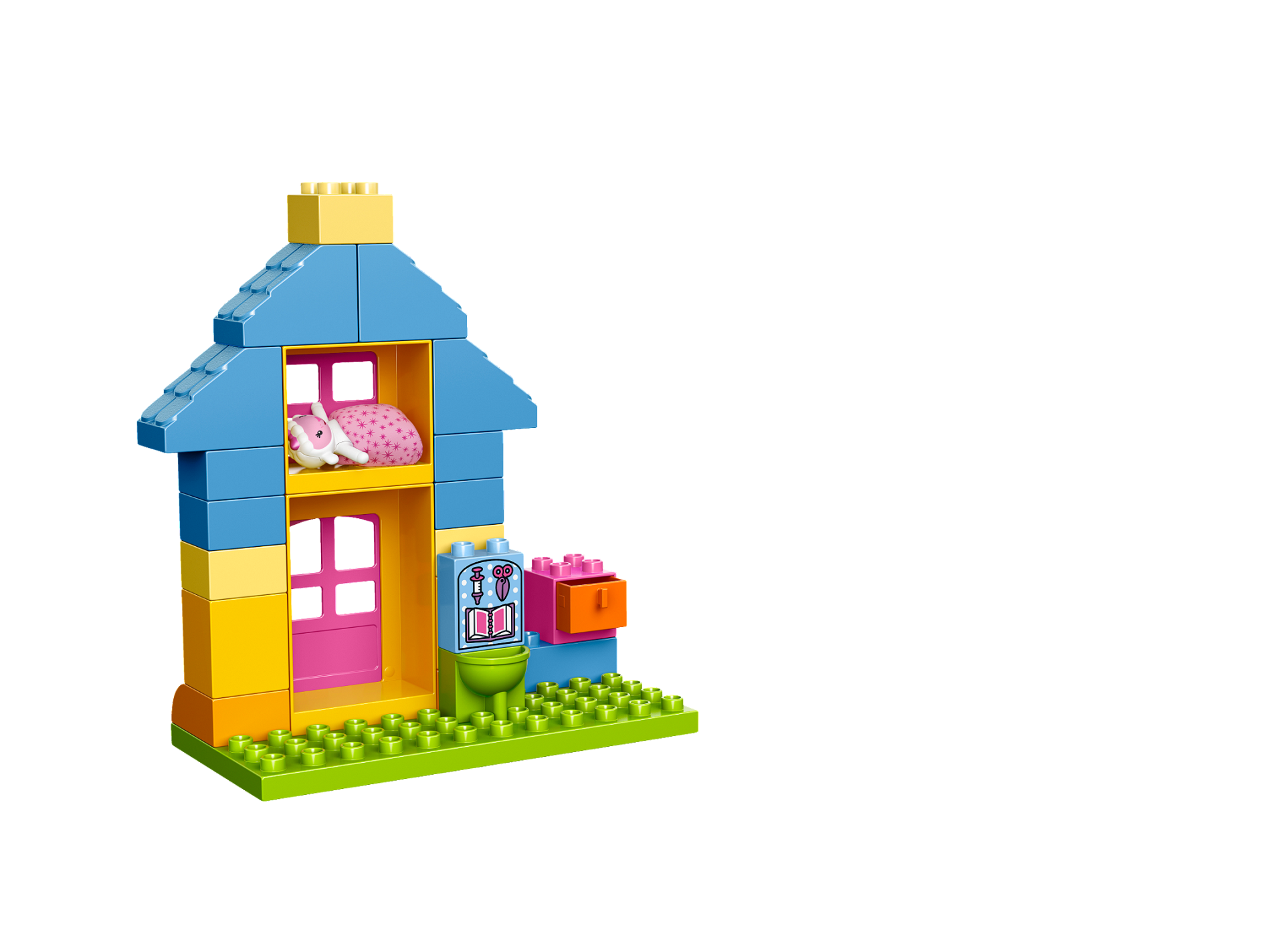 Duplo, Brick 1 x 2 x 2 with Scissors, Book and Syringe Pattern