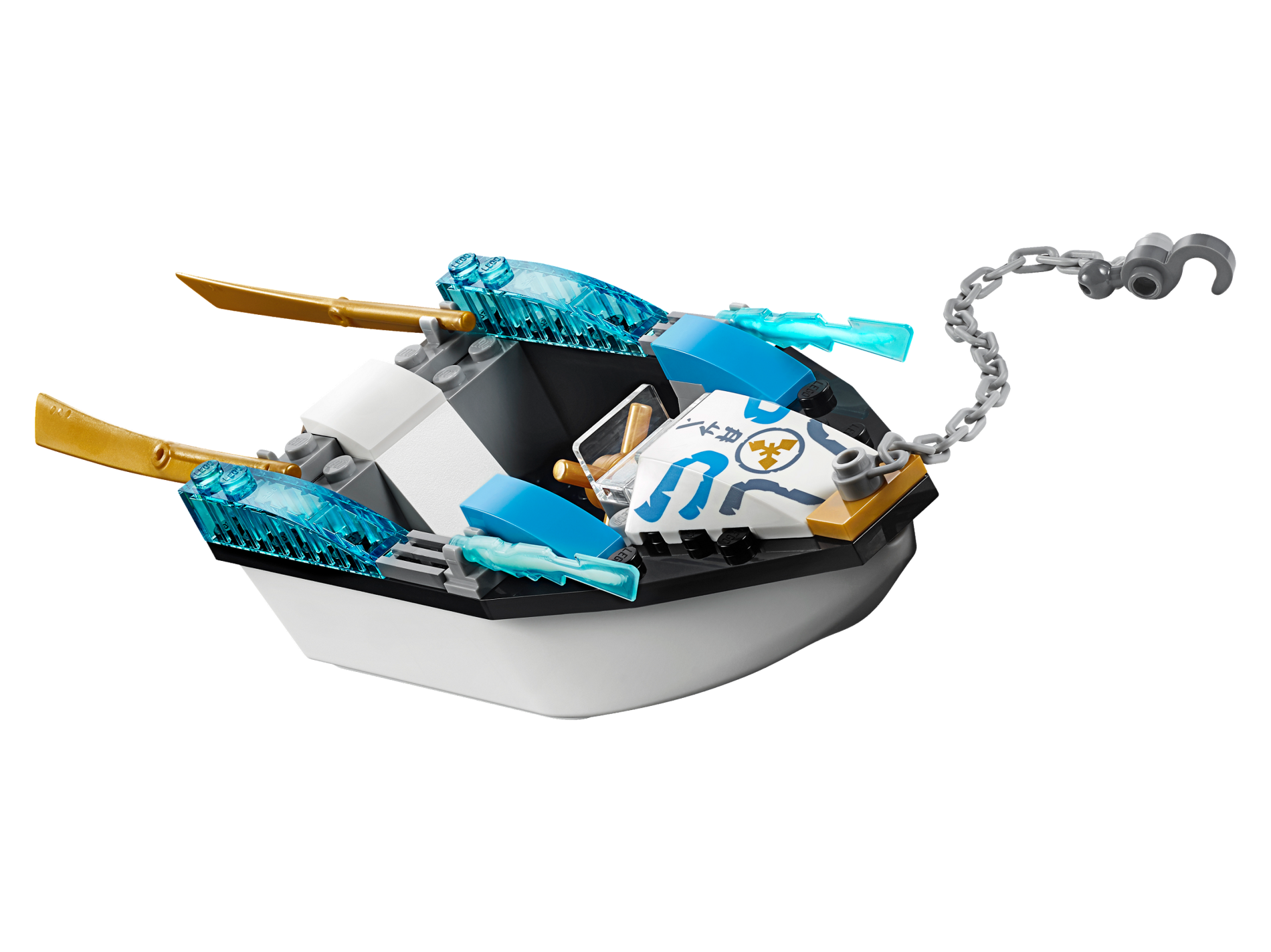 Wedge 4 x 4 No Top Studs with Asian Characters, Gold Zane Symbol, Sand Blue and Dark Azure Swirls Pattern