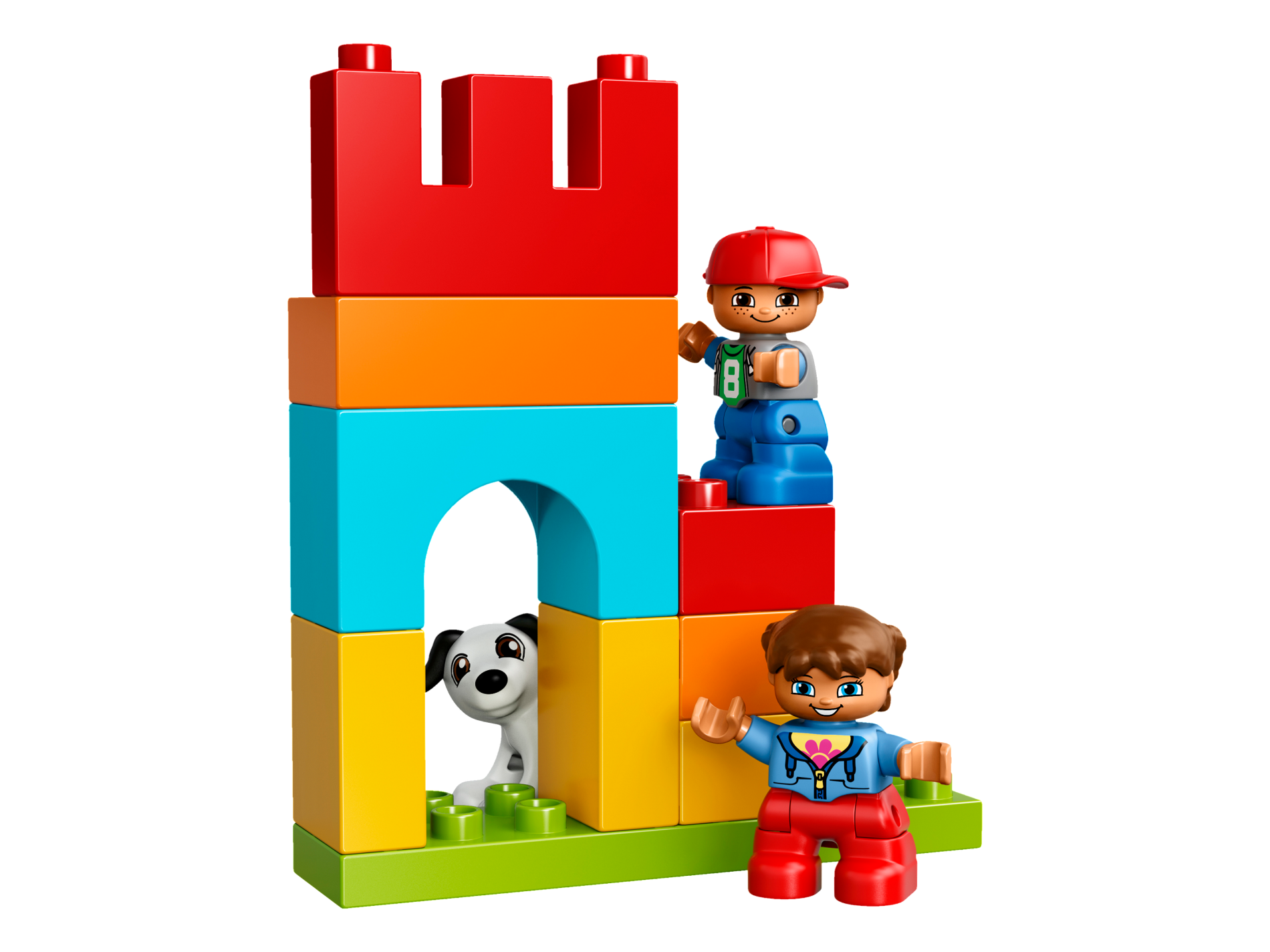 | 1 X Duplo Dog with Black Ears and Tail and Spots Pattern, Reddish Brown Eyes | White |   |  |