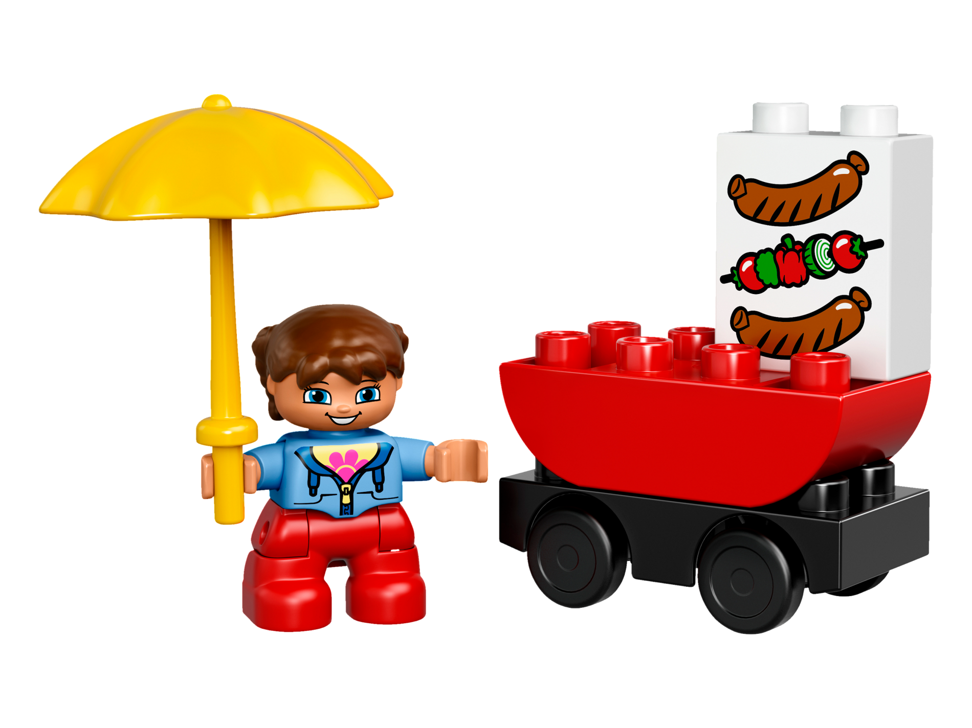 | 1 X Duplo, Brick 1 x 2 x 2 with Bottom Tube with 2 Sausages and Kebab Pattern | White |   |  |