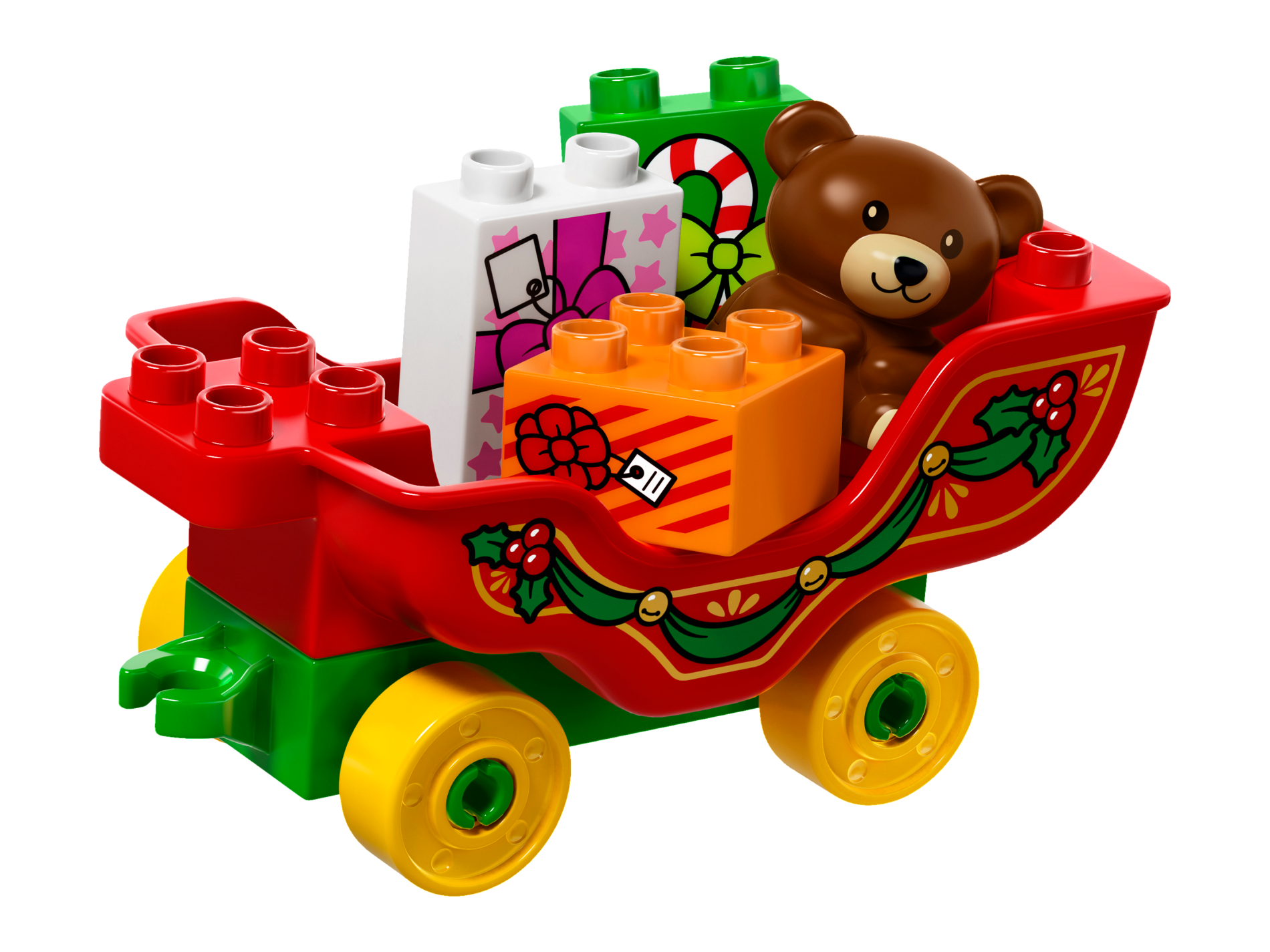 | 1 X Duplo, Brick 2 x 2 with Present / Gift with Bow and Stripes Pattern | Orange |   |  |