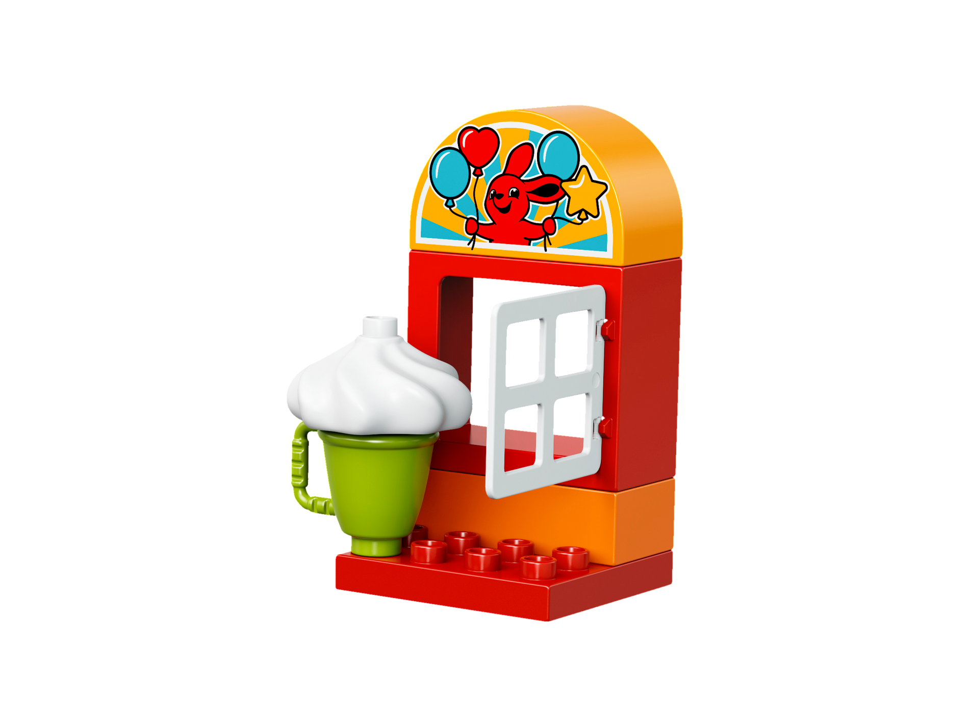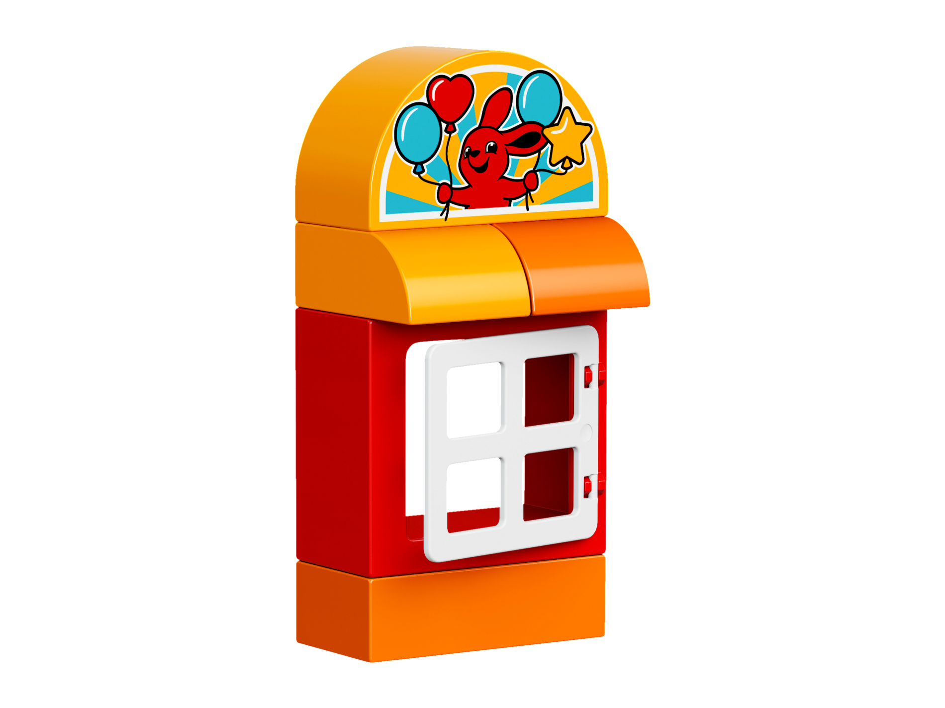 Duplo, Brick 2 x 4 x 2 Curved Top with Red Rabbit and Four Balloons Pattern