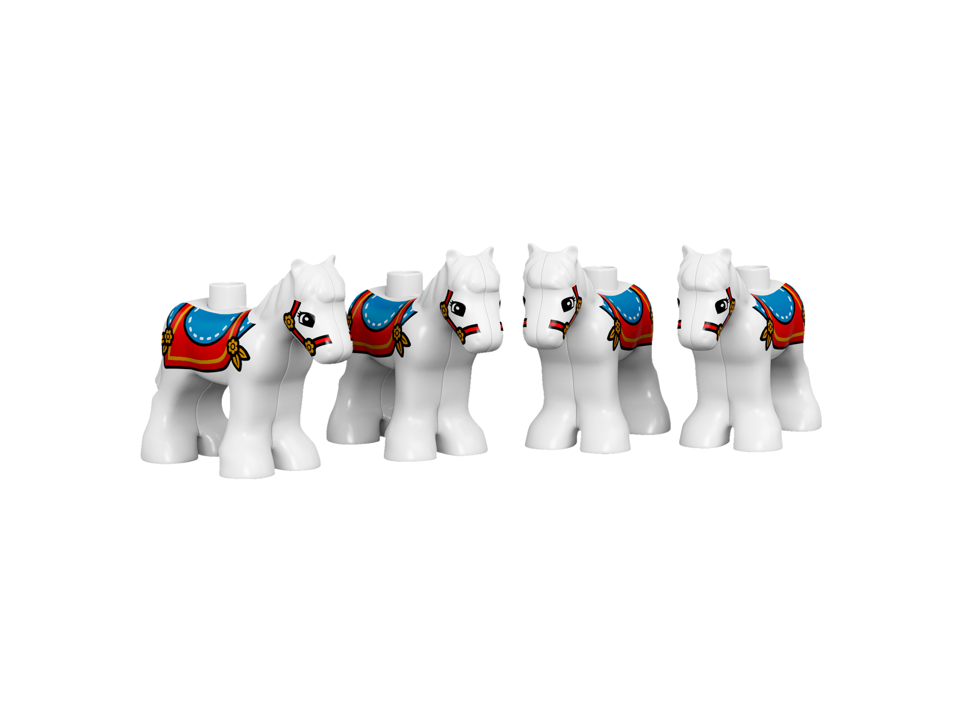 Duplo Horse Foal with Blue and Red Saddle with Red and Black Bridle Pattern