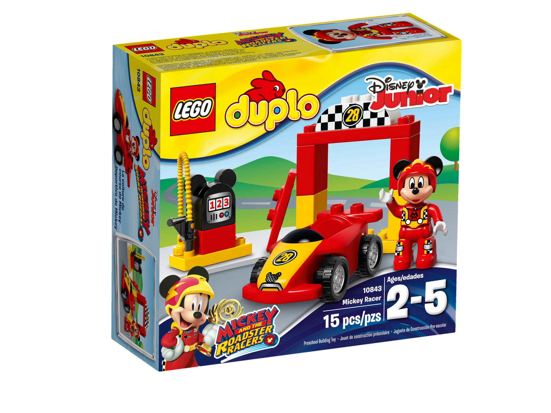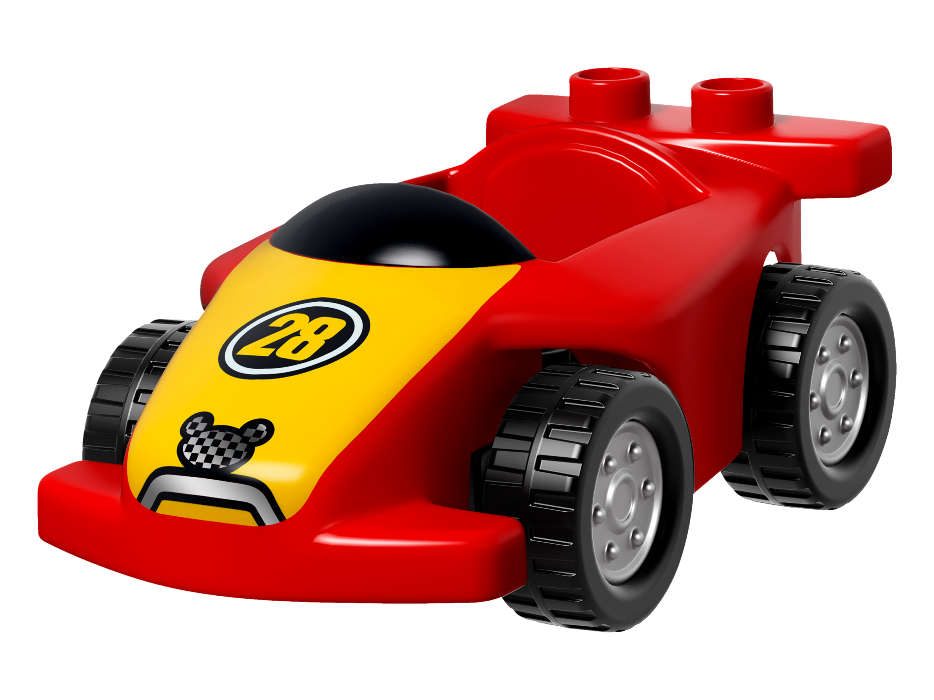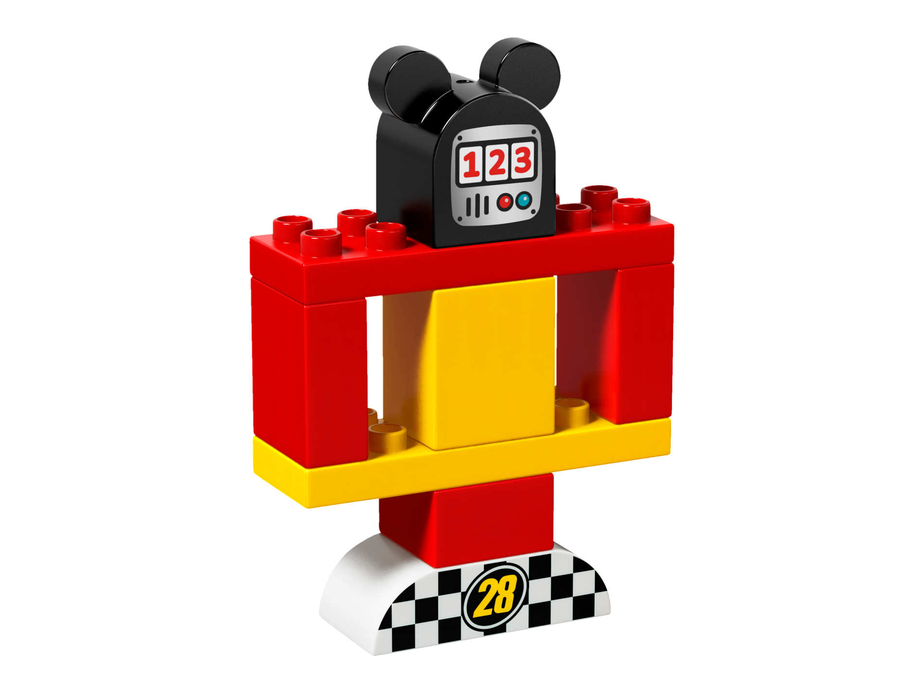 Duplo Car Body Race with Black Windshield with Yellow Stripe Wide and '28' and Mickey Mouse Pattern