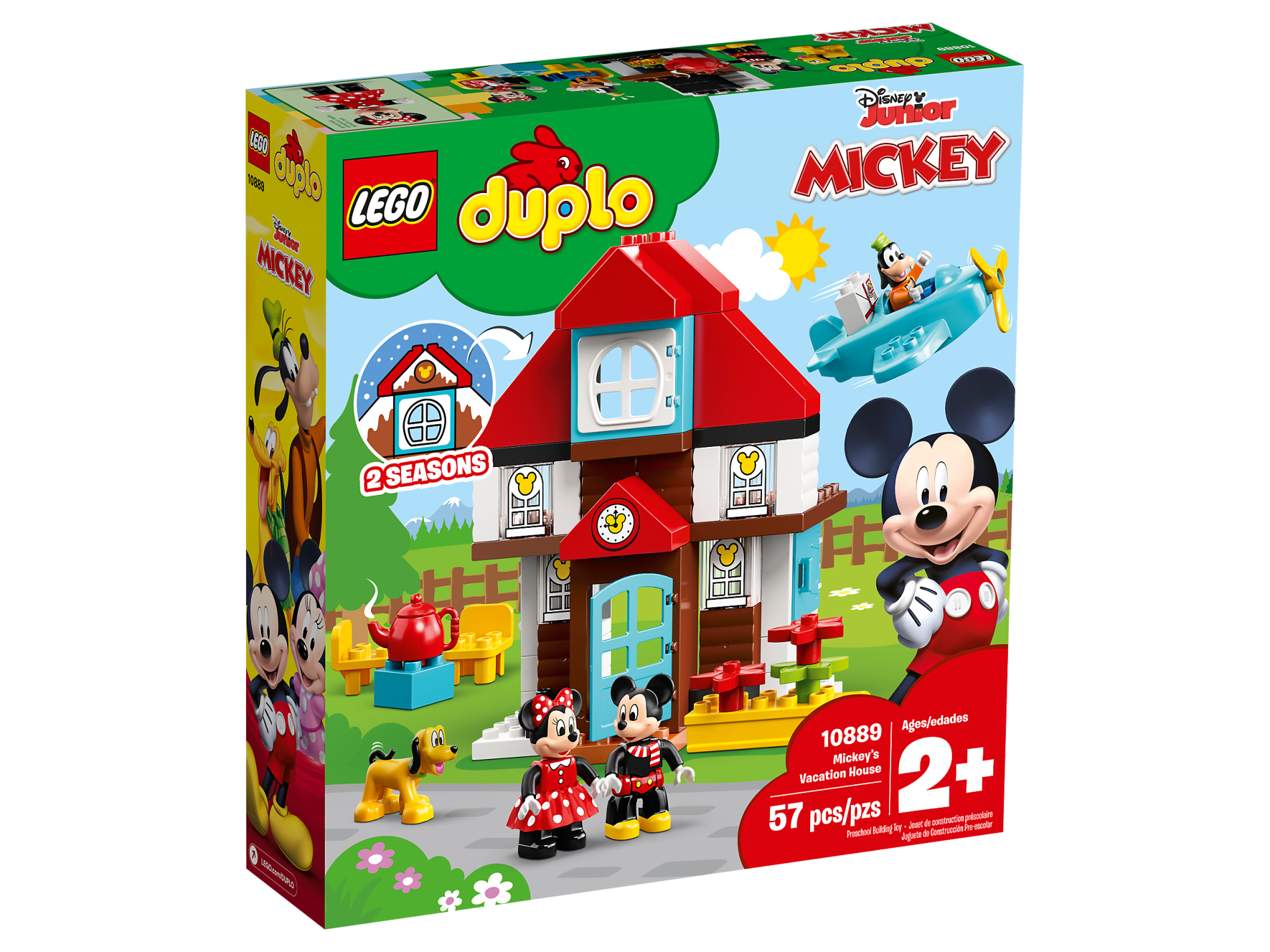 Duplo, Brick 4 x 2 Slope 45 Double with Clock with Mickey Mouse Logo Pattern