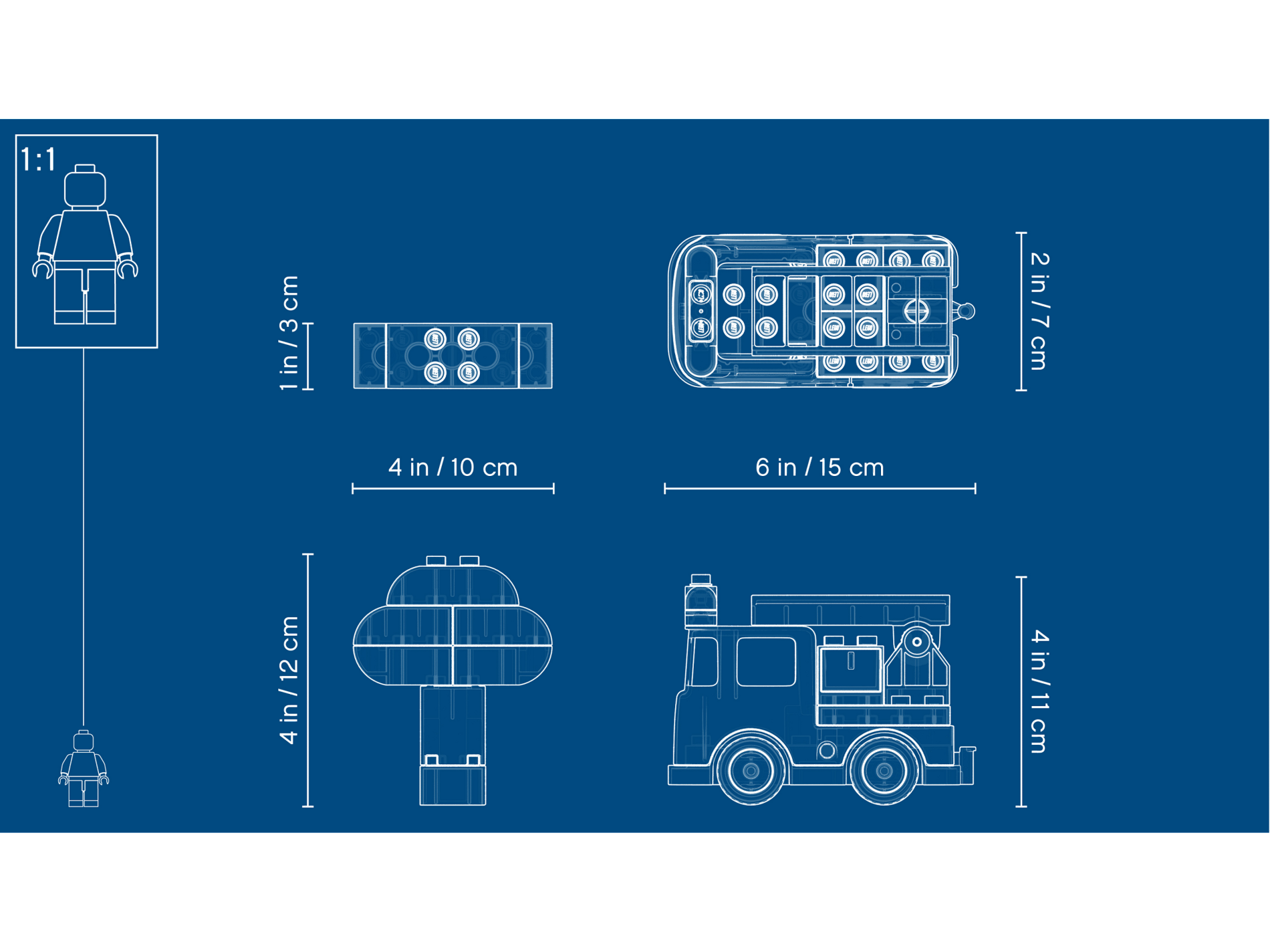 Duplo Cabin Truck 4 x 8 x 3 1/2 with Flat Silver Grille with Fire Badge and Lights Pattern