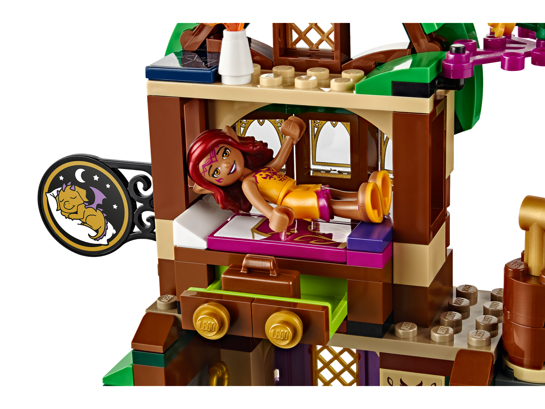 | 1 X Tile 2 x 4 with White Winged Leaf and Scrollwork Pattern (Sticker) - Set 41174 | Magenta |   |  |