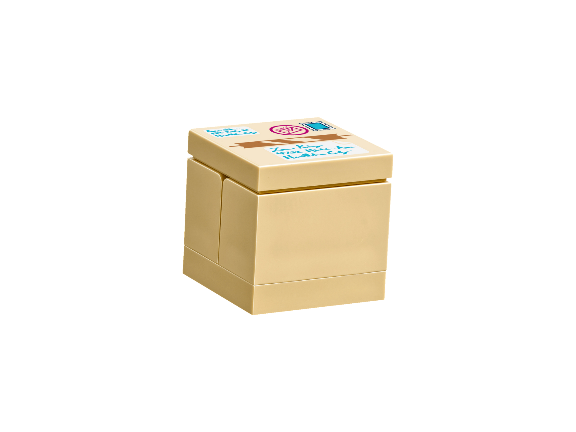 Tile, Modified 2 x 2 Inverted with Package Box Top with Postage Stamp, Packing Tape and Address Labels Pattern