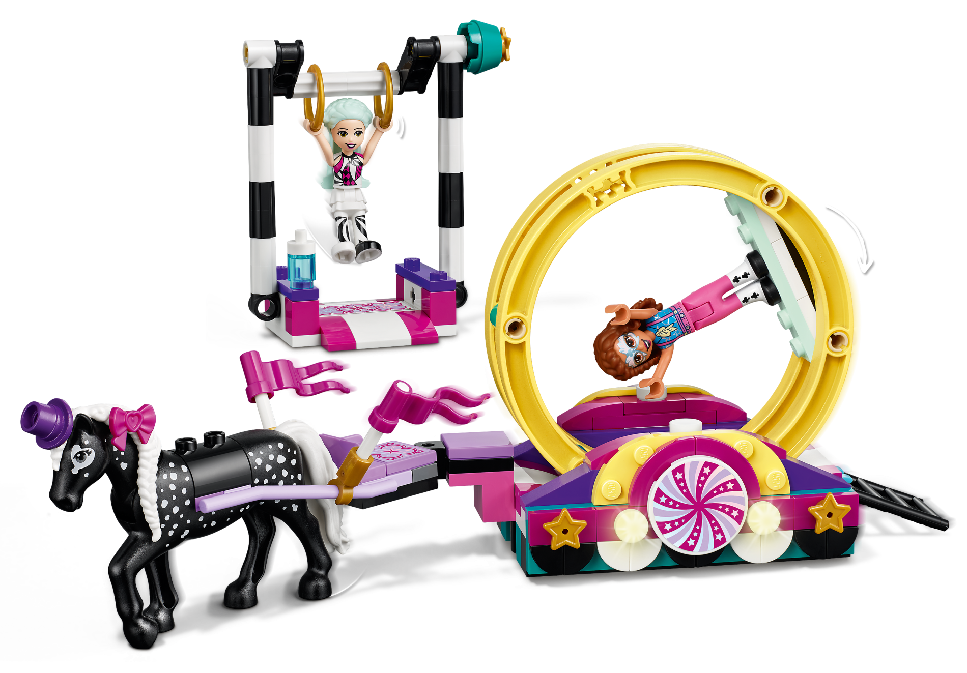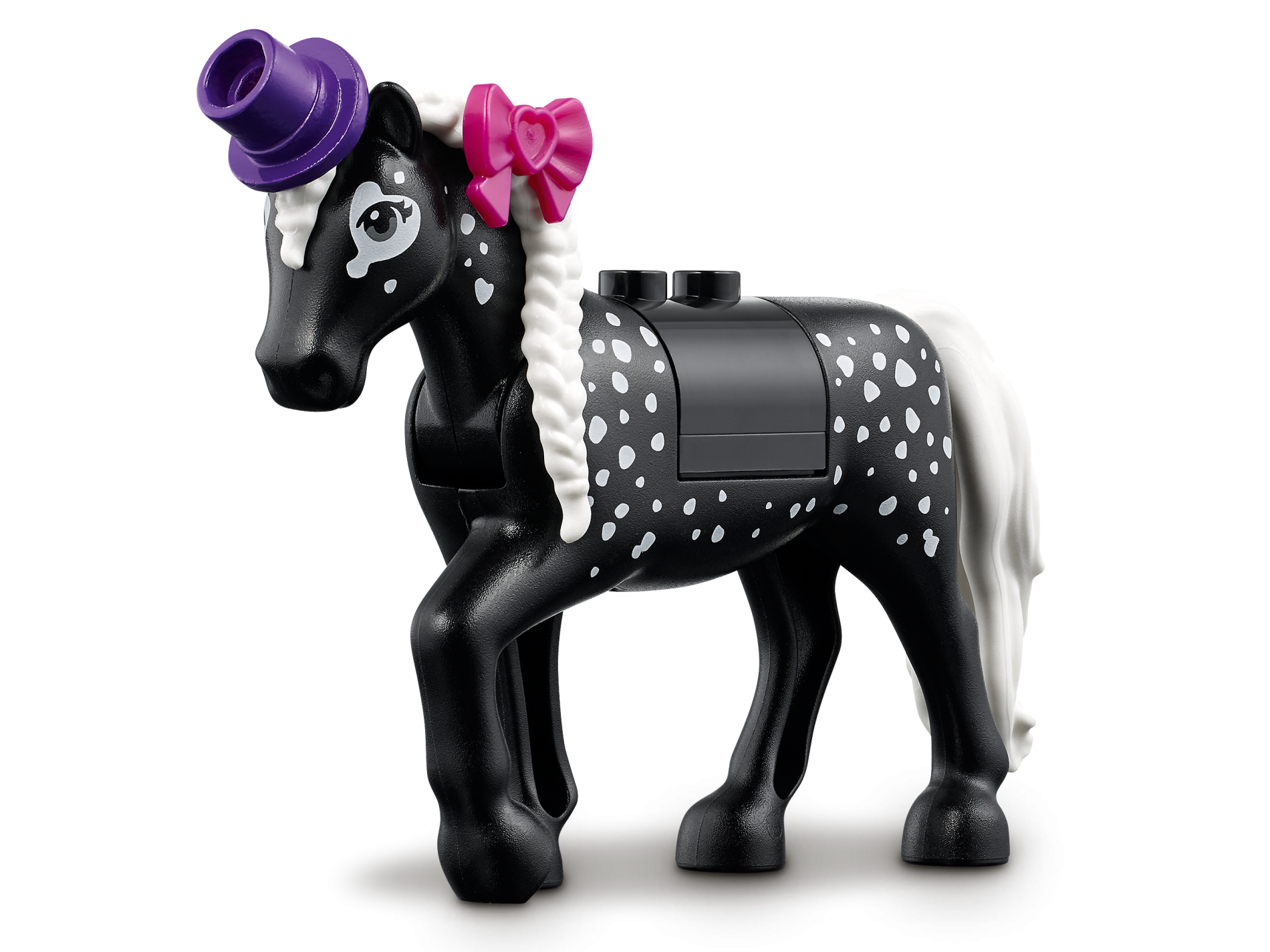 | 1 X Horse with 2 x 2 Cutout and Movable Neck, White Tail and Braided Mane, White Spots Pattern | Black |   |  |