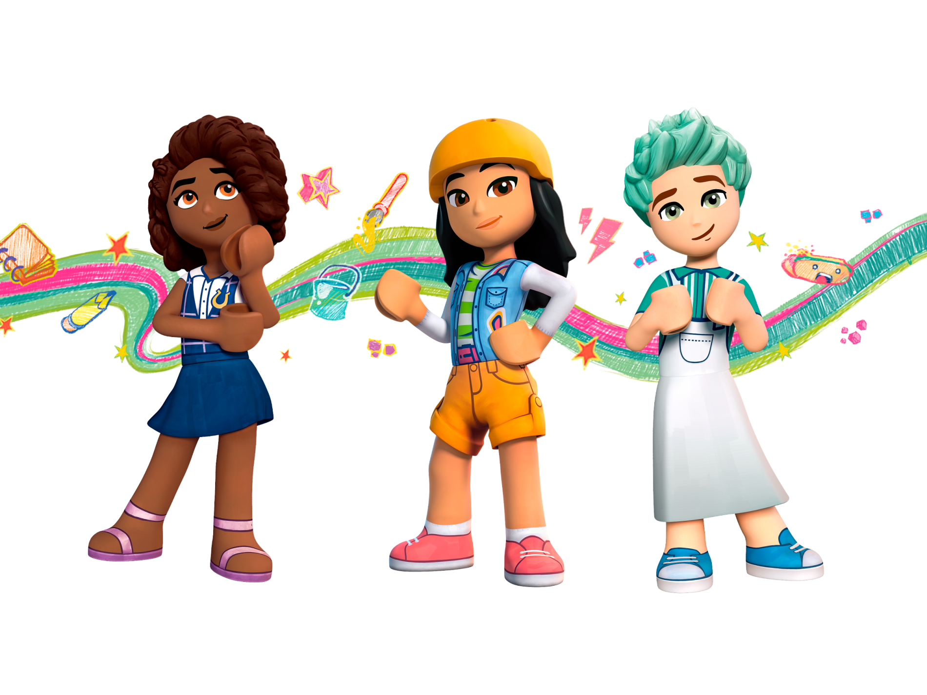 | 1 X Mini Doll, Hair Combo, Hair with Hat, Long with Molded Bright Light Orange Bicycle Helmet Pattern | Black |   |  |