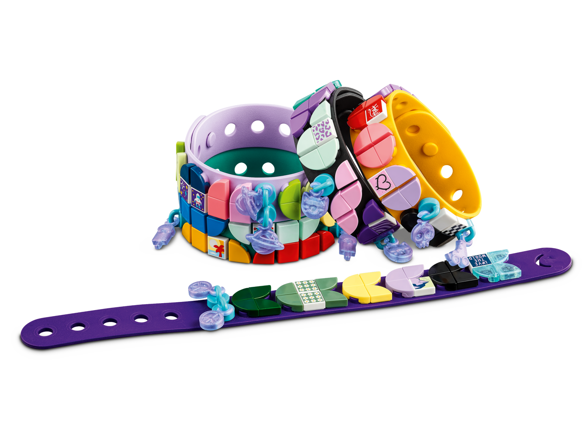| 4 X Tile 1 x 1 with Groove with Lavender 'LOVE THE WORLD' with Heart on Dark Blue Background Pattern | White |   |  |