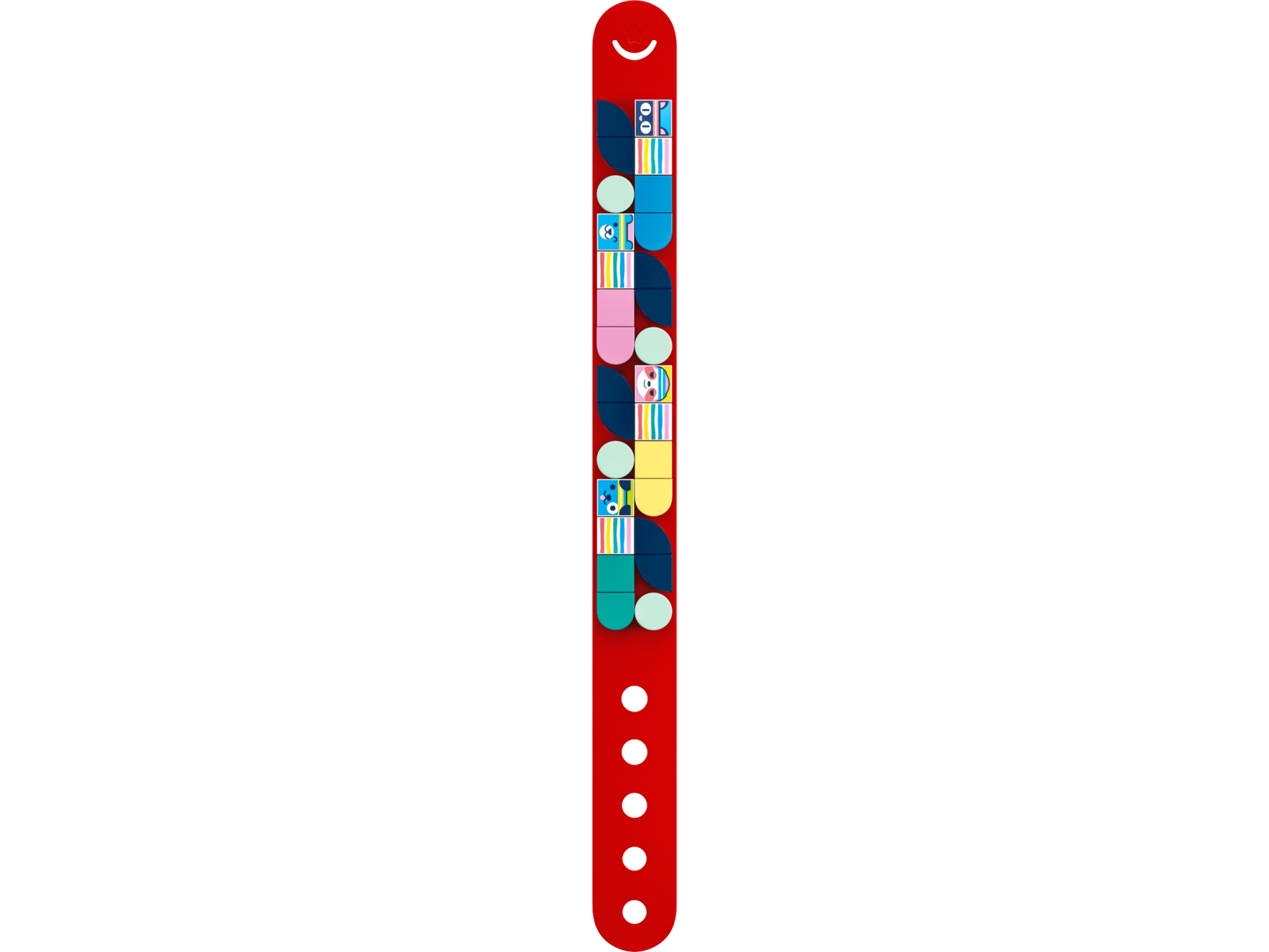 Tile, Round 1 x 1 Quarter with Bright Pink, Dark Azure, Dark Turquoise, Yellow, and Coral Rainbow Stripes Pattern