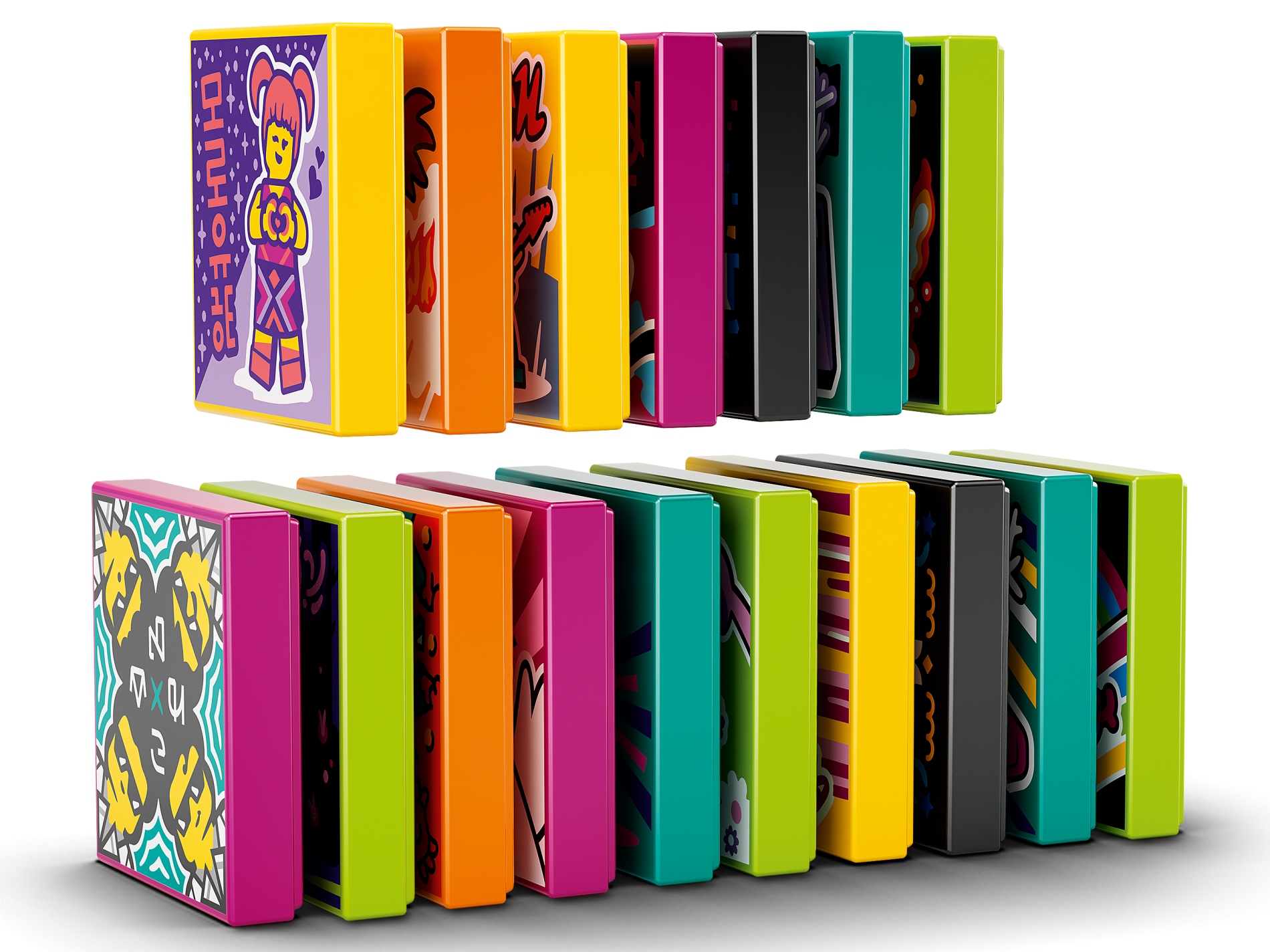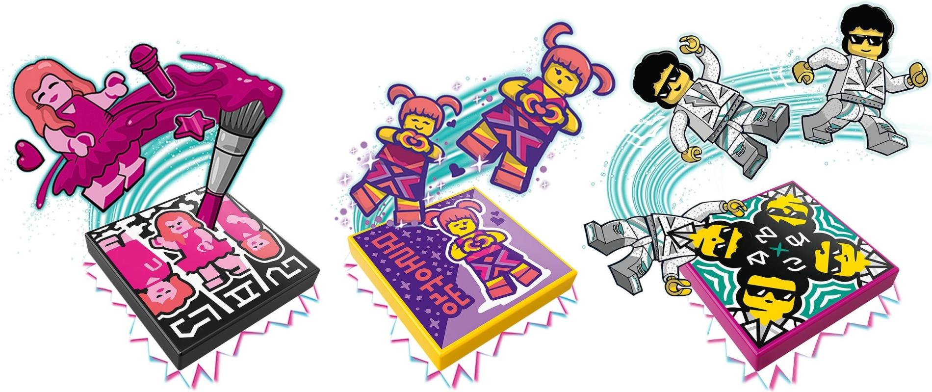 | 14 X Tile 2 x 2 with Groove with BeatBit Album Cover - Black Minifigure in Yellow and Purple Splotches Pattern | Black |   |  |