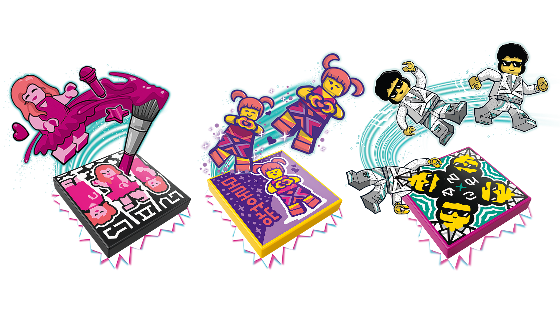 | 1 X Tile 2 x 4 with Dancefloor, Silver Sunburst, 2 Dancers Pattern | Black |   |  |