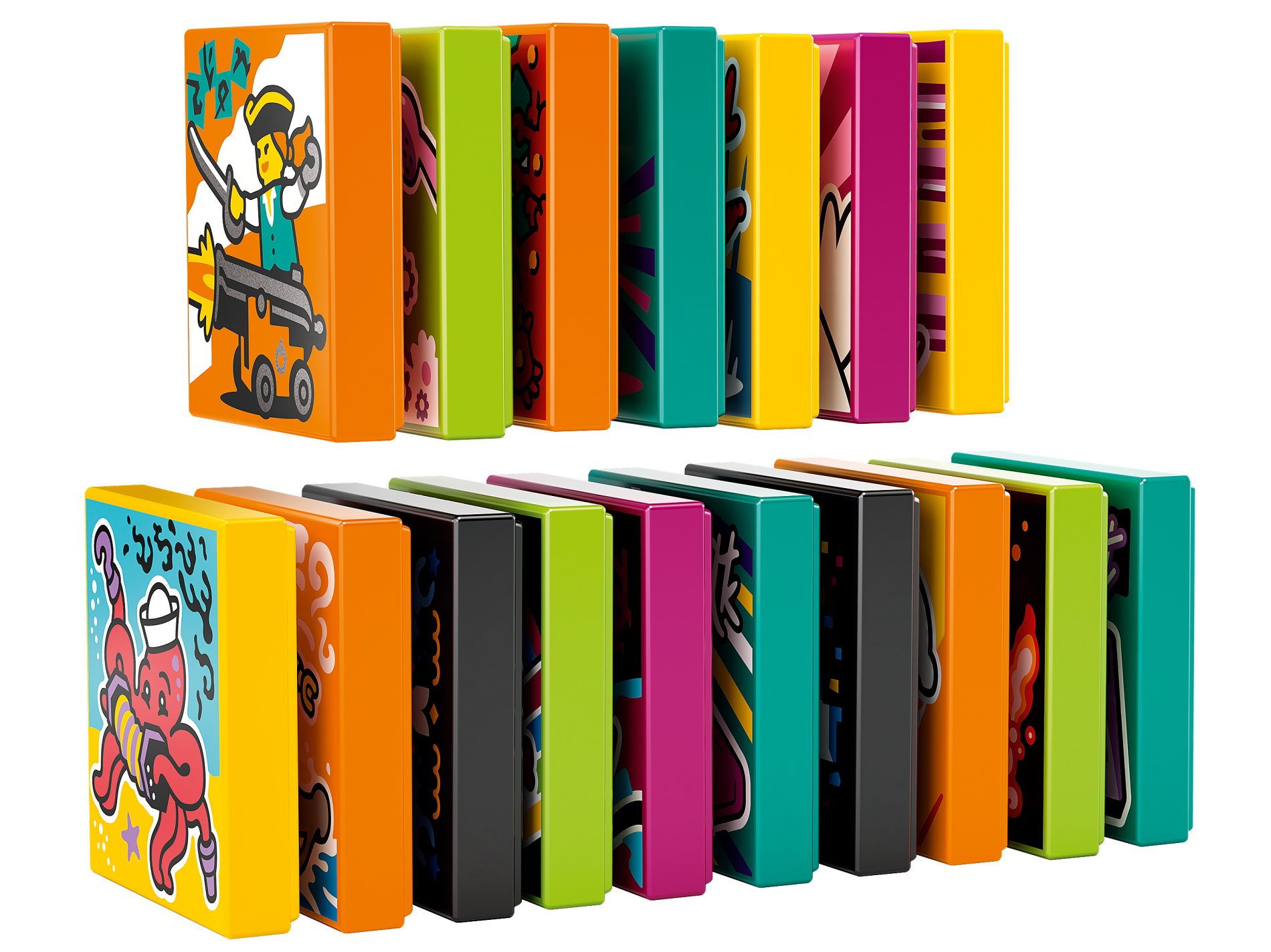 | 14 X Tile 2 x 2 with Groove with BeatBit Album Cover - Black Minifigure in Yellow and Purple Splotches Pattern | Black |   |  |