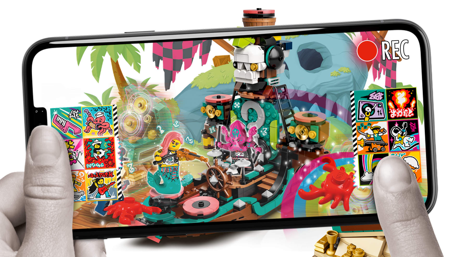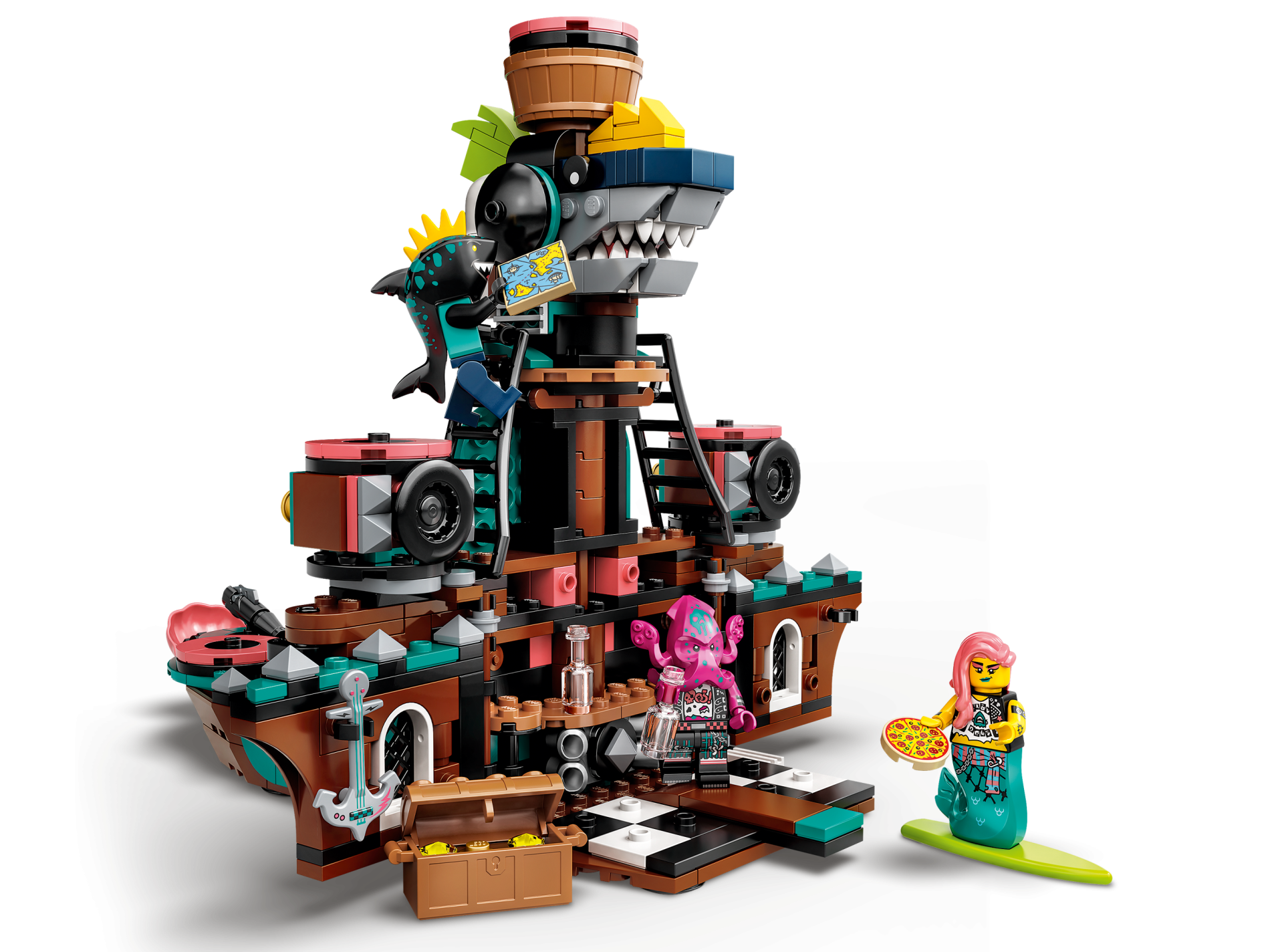 | 1 X Minifigure, Utensil Guitar Anchor with Dark Turquoise Strings and Coral Lightning Bolt Pattern | Light Bluish Gray |   |  |