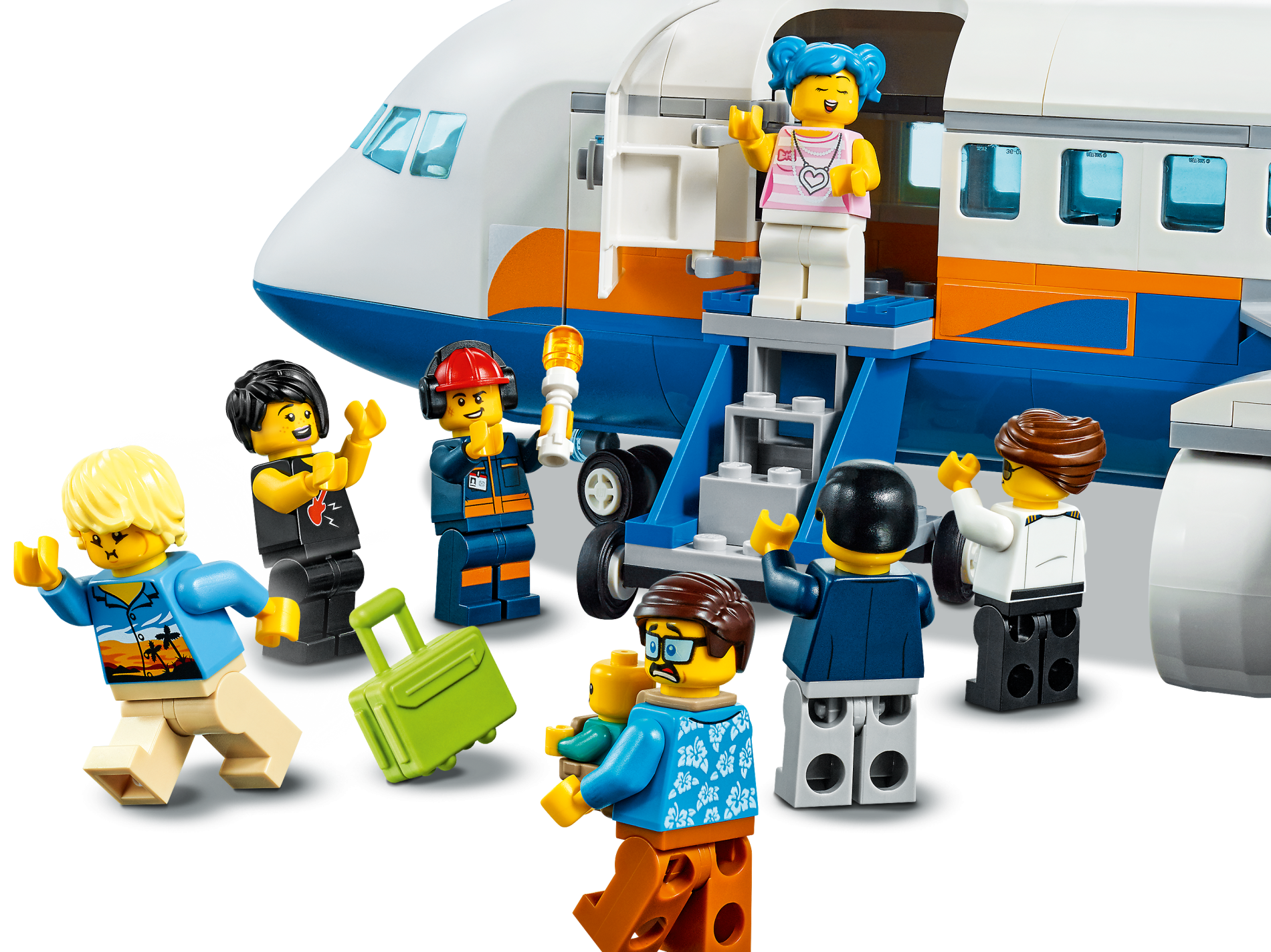 | 1 X Aircraft Fuselage Forward Top Curved 8 x 12 x 6 with 6 Window Panes and Trans-Light Blue Glass with Orange and Blue Stripes Pattern on Both Sides (Stickers) - Set 60262 | White |   |  |
