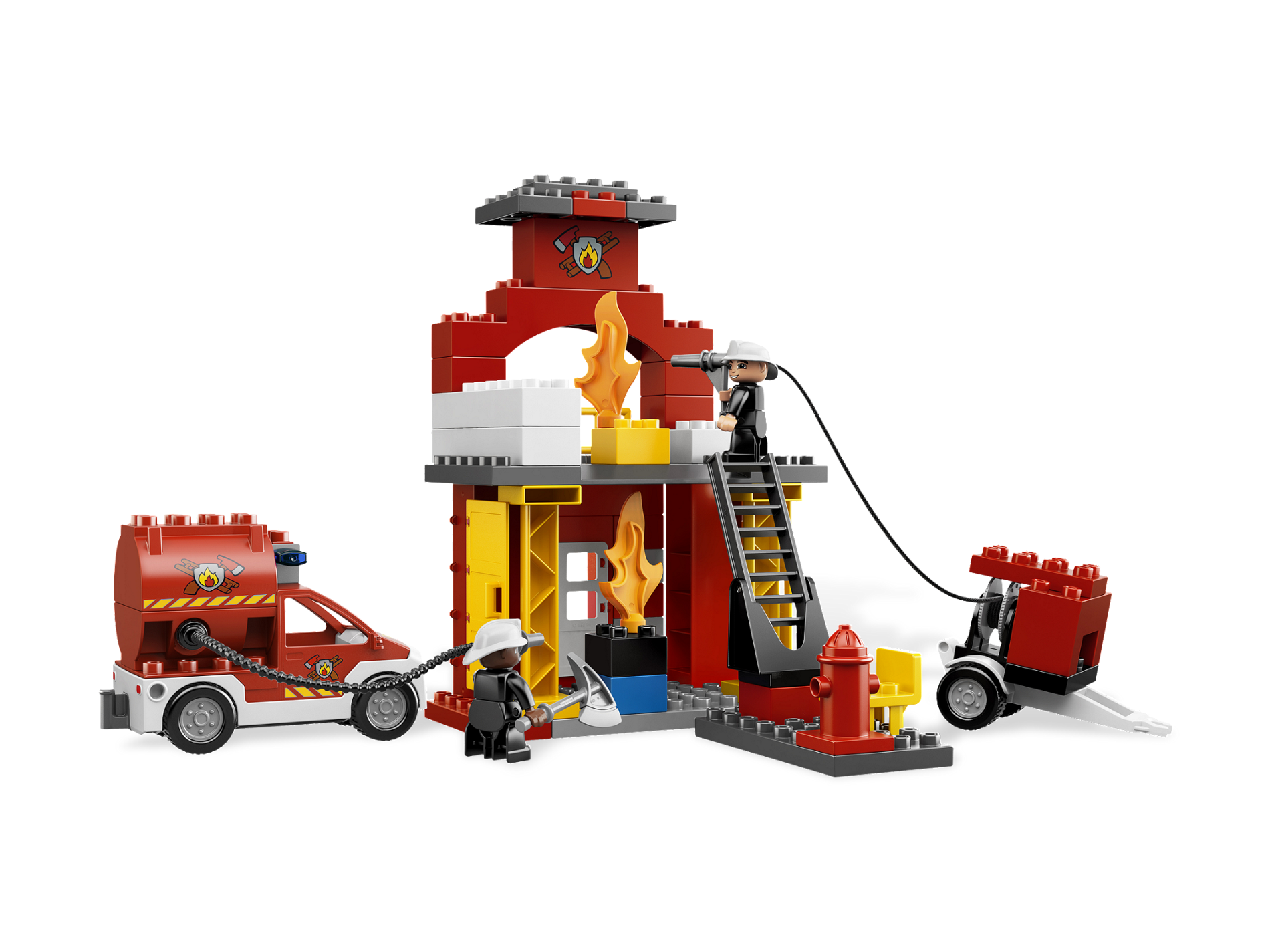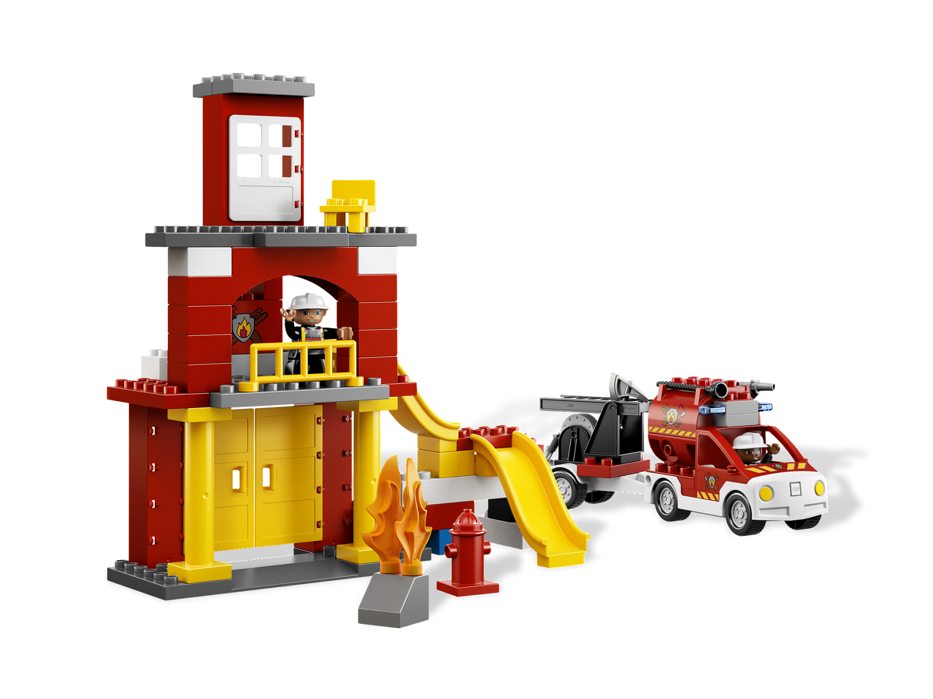 | 1 X Duplo Truck Pickup Flatbed with White Base with Fire Department Logo Pattern | Red |   |  |