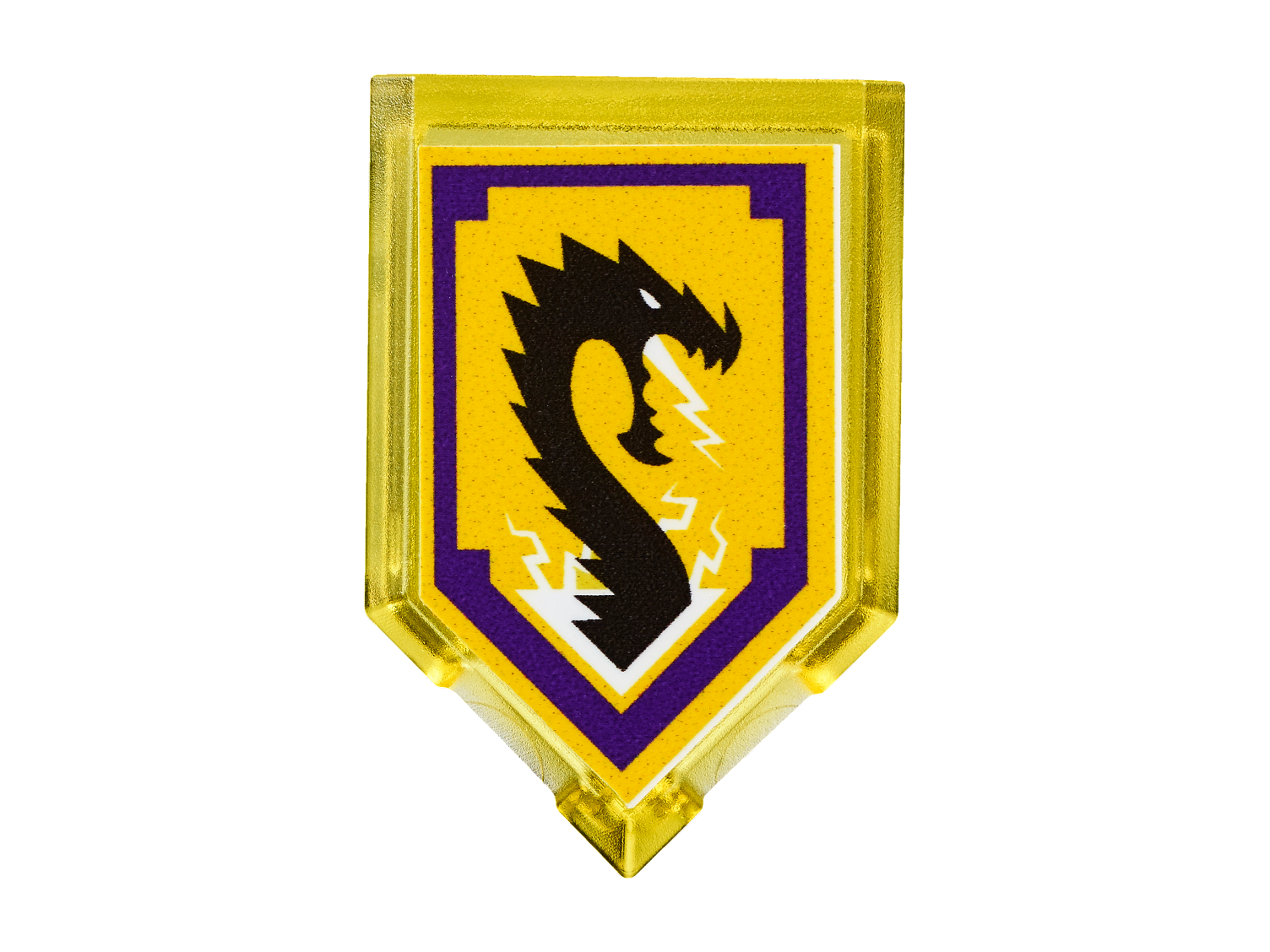 | 1 X Tile, Modified 2 x 3 Pentagonal with Nexo Power Shield Pattern - Storm Dragon | Trans-Yellow |   |  |