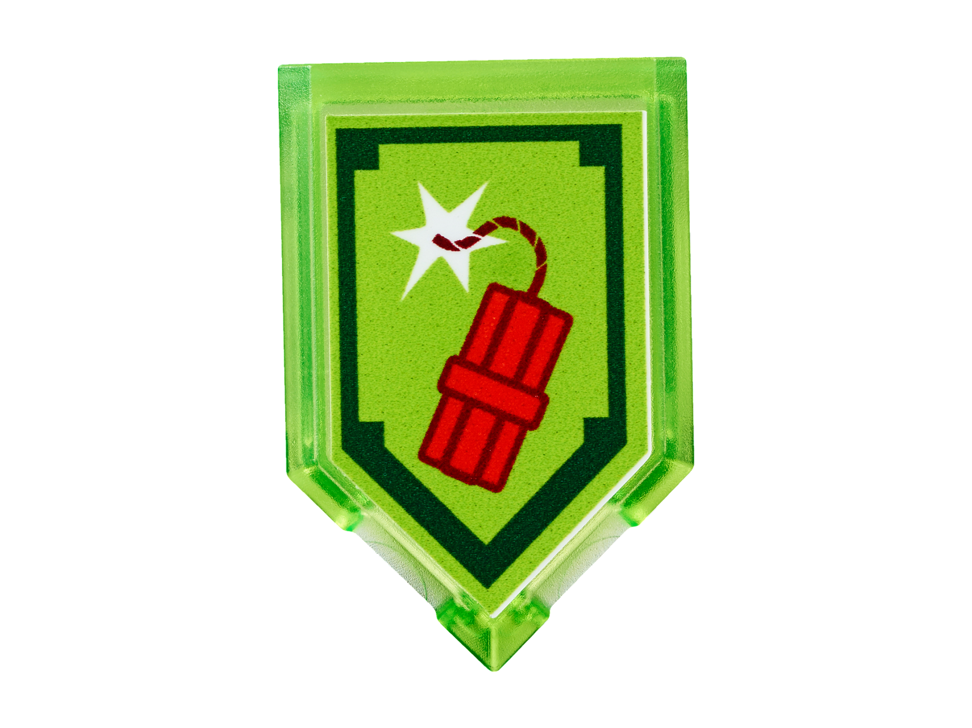 | 1 X Tile, Modified 2 x 3 Pentagonal with Nexo Power Shield Pattern - Dynamighty | Trans-Bright Green |   |  |