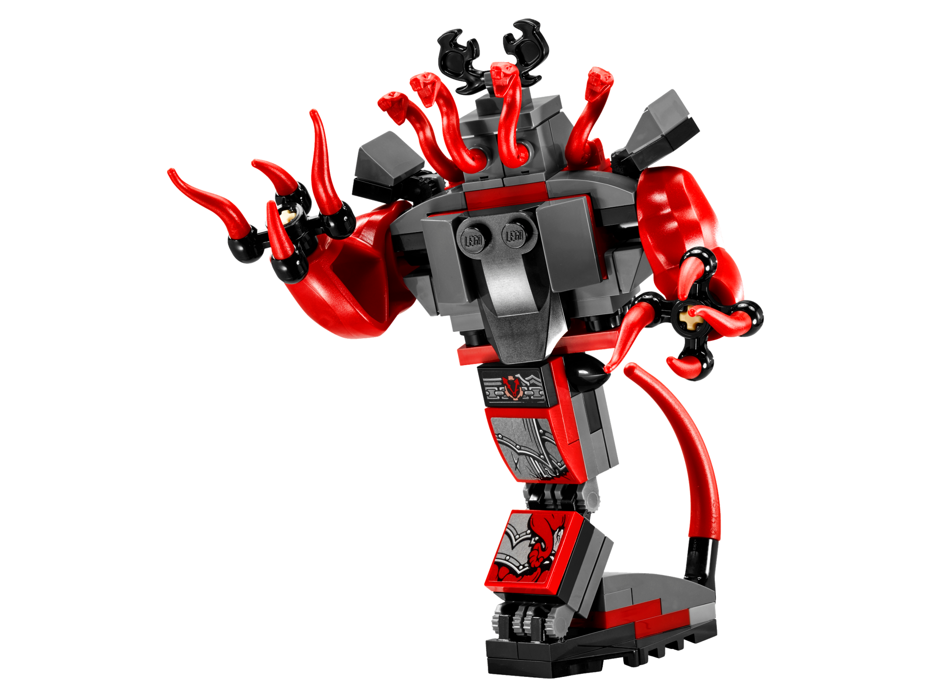 | 1 X Tile 2 x 2 with Pearl Dark Gray Armor with Rivets and Red Snake Tail Pattern (Sticker) - Set 70627 | Red |   |  |