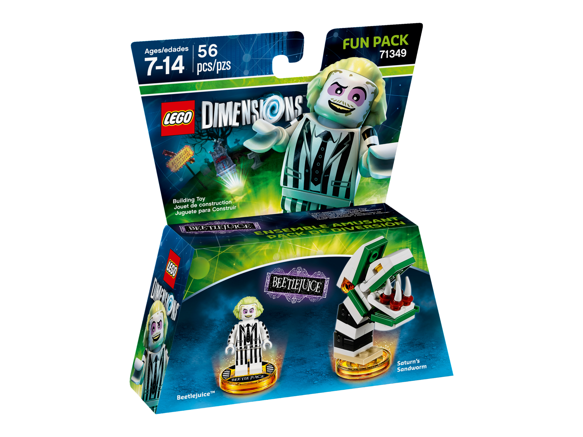 | 1 X Dimensions Toy Tag 4 x 4 x 2/3 with 2 Studs for Beetlejuice #80 with 'BEETLEJUICE' and Black Striped Background Pattern | Trans-Yellow |   |  |