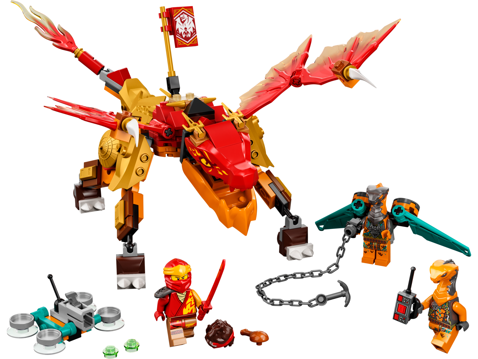 | 1 X Dragon Head (Ninjago) Jaw with 2 Bar Handles on Back with Bright Light Orange Eyes and Scales Pattern | Red |   |  |