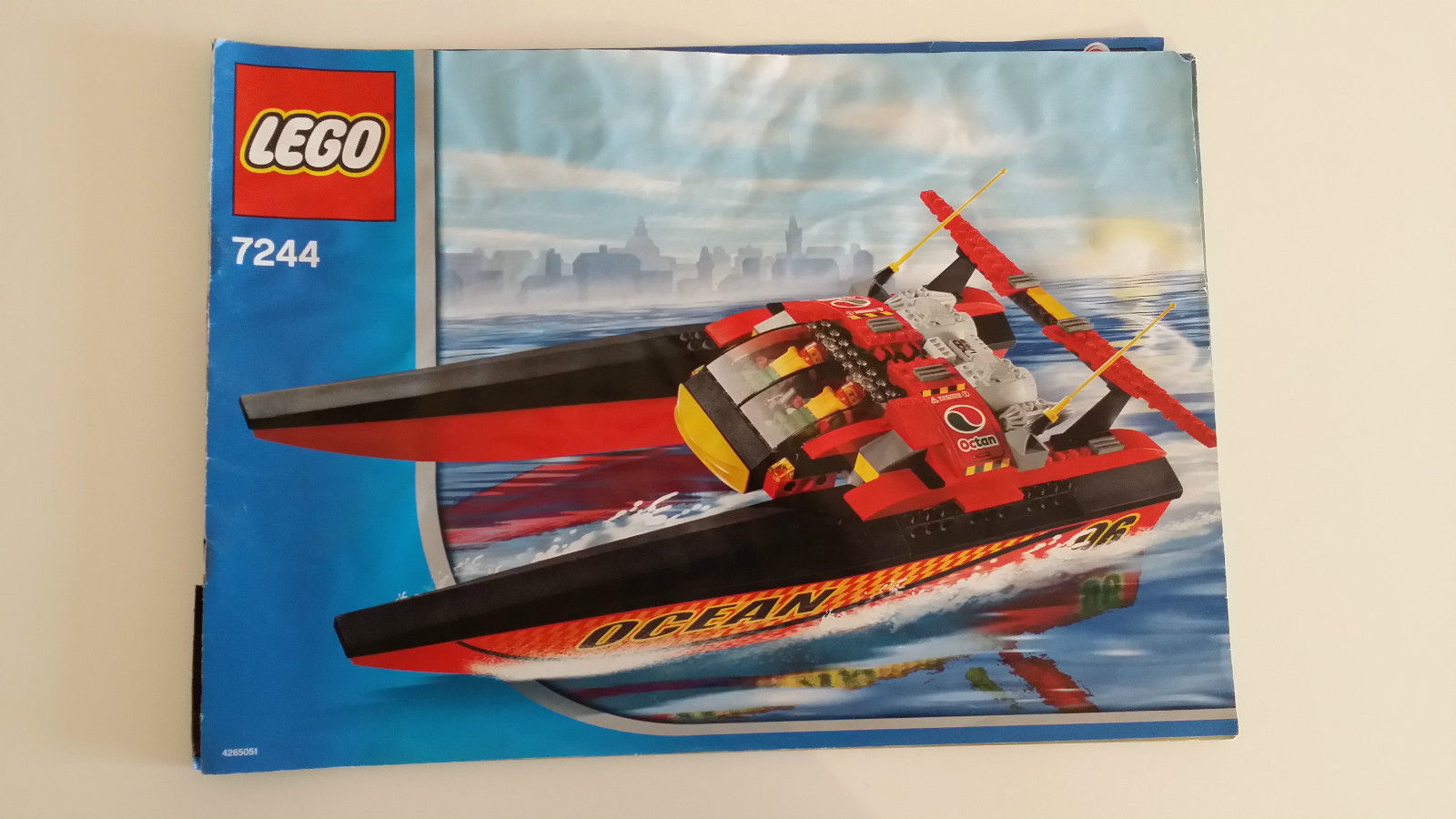 | 1 X Boat Hull Unitary 48 x 6 x 5 Complete Assembly with Black Top (Catamaran Half) with 'OCEAN' and '96' Pattern on Left Side (Stickers) - Set 7244 | Red |   |  |