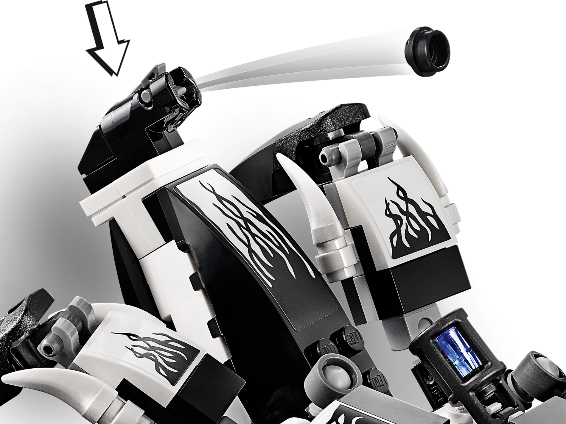 Slope, Curved 2 x 2 with Black Flames on White Background Pattern (Sticker) - Set 76163