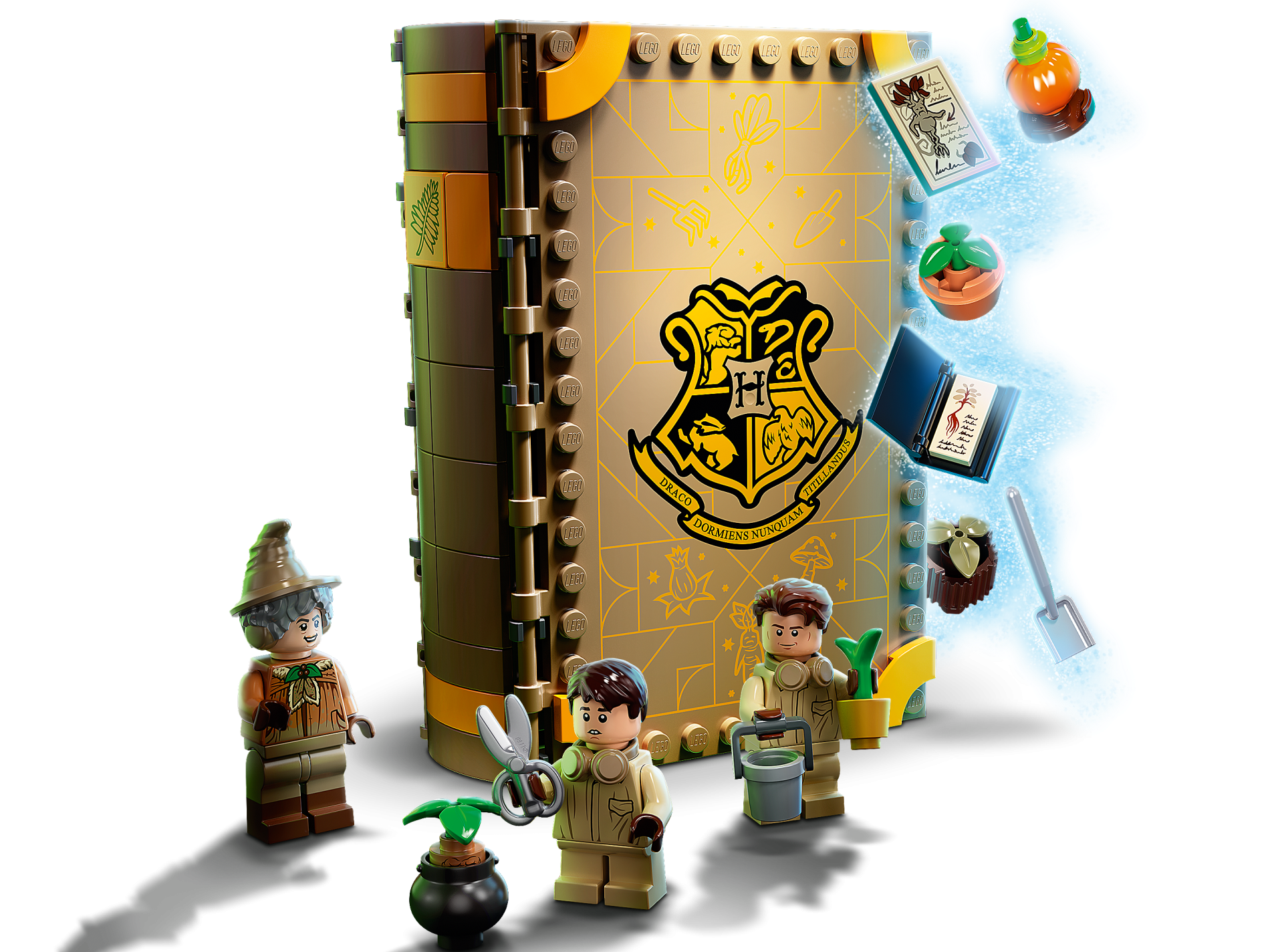 | 1 X Tile, Modified 10 x 16 with Studs on Edges and Bar Handles with Hogwarts Herbology Class Pattern | Dark Tan |   |  |