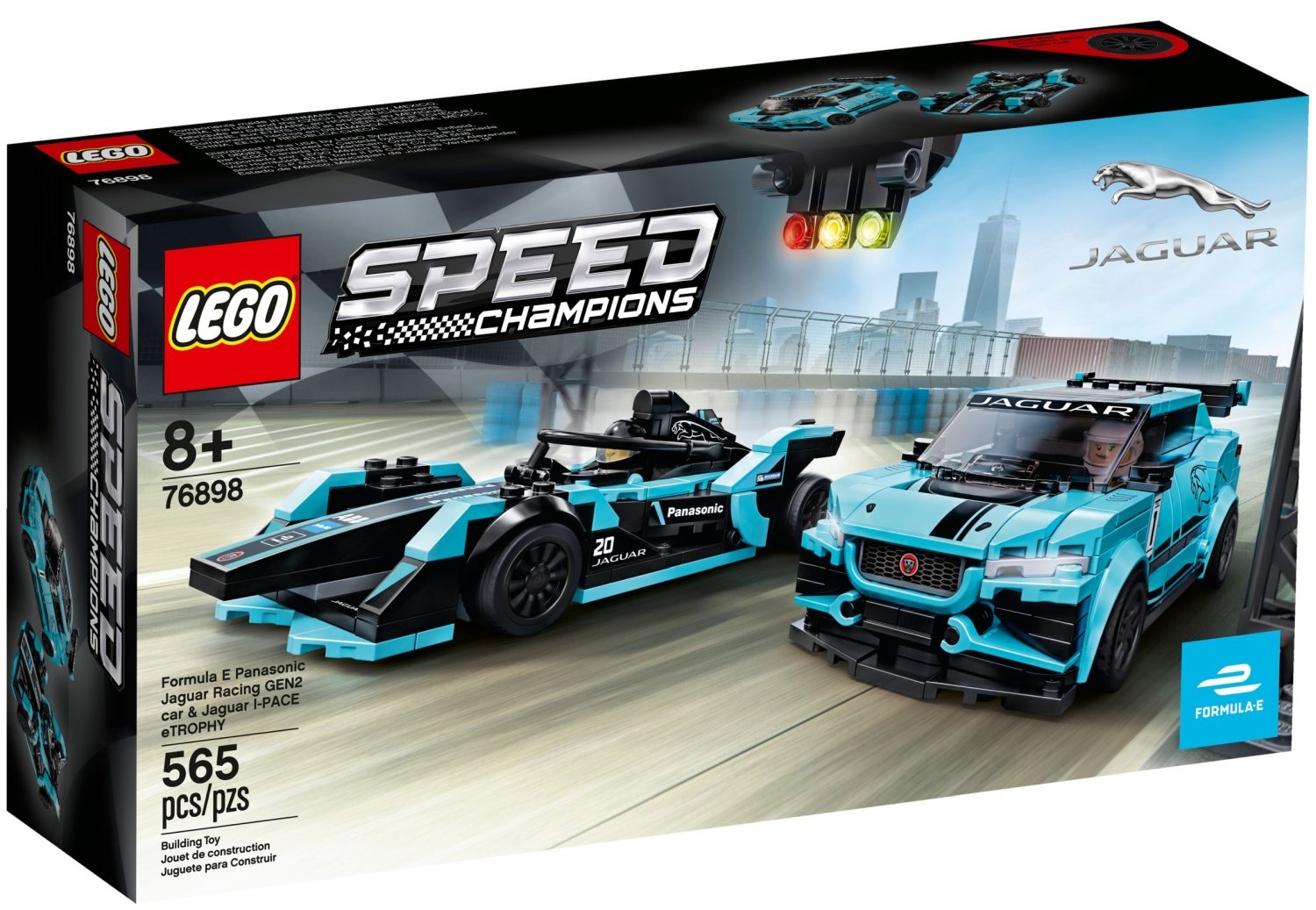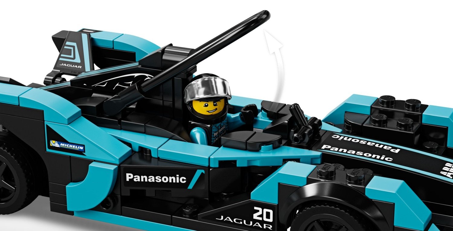 | 1 X Slope, Curved 8 x 2 with Two Medium Azure Stripes, Panasonic, ABB, Julius Bär, FORMULA E and Jaguar Logo Pattern (Sticker) - Set 76898 | Black |   |  |