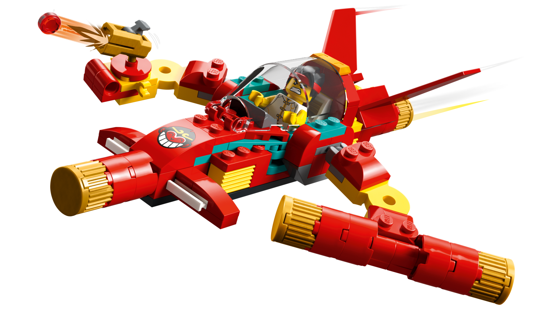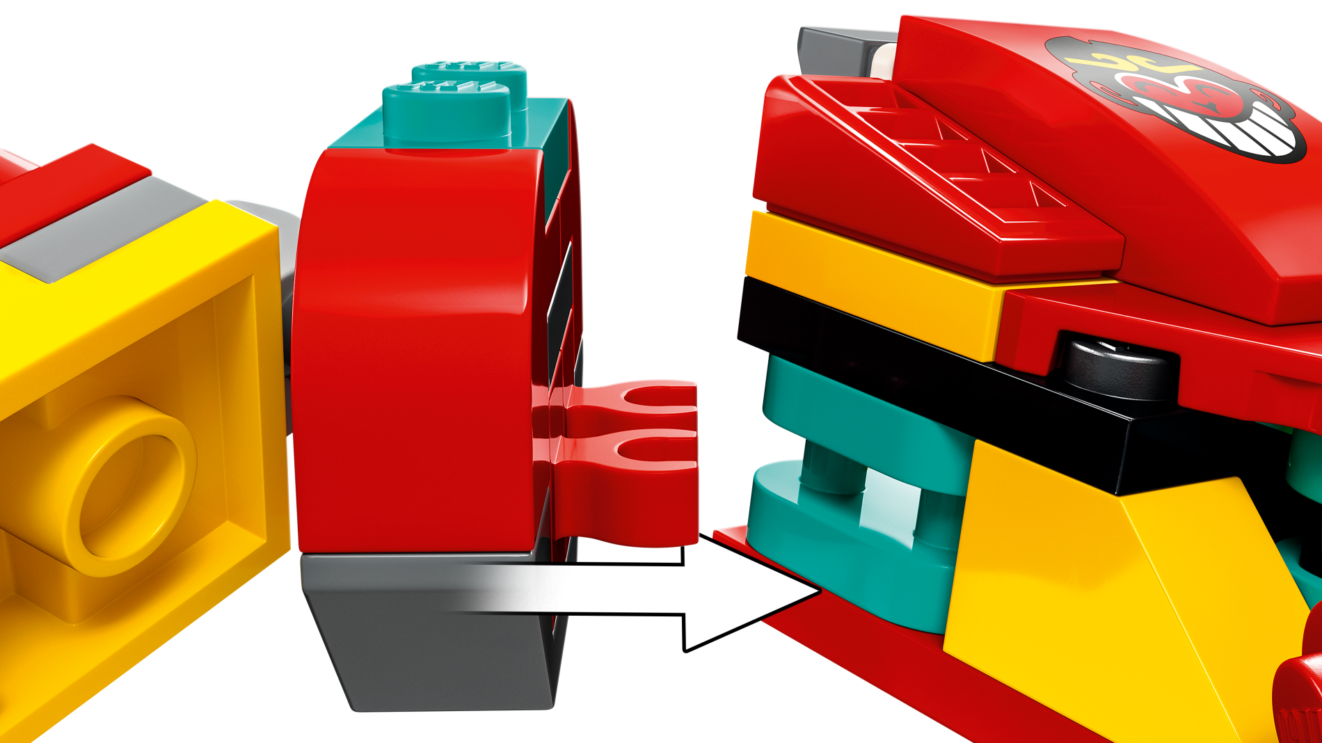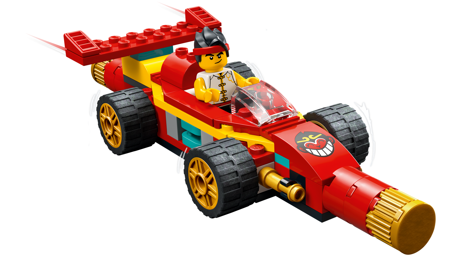 Slope, Curved 3 x 2 with Monkey Face with Black Hair, Bright Light Orange Crown, and White Grinning Teeth (Monkie Head Logo) Pattern