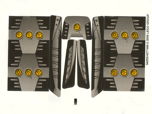 | 1 X Panel 1 x 4 x 3 with 3 Yellow Circles with Bionicle Code Pattern D on Silver Pattern (Sticker) - Set 8758 | Black |   |  |