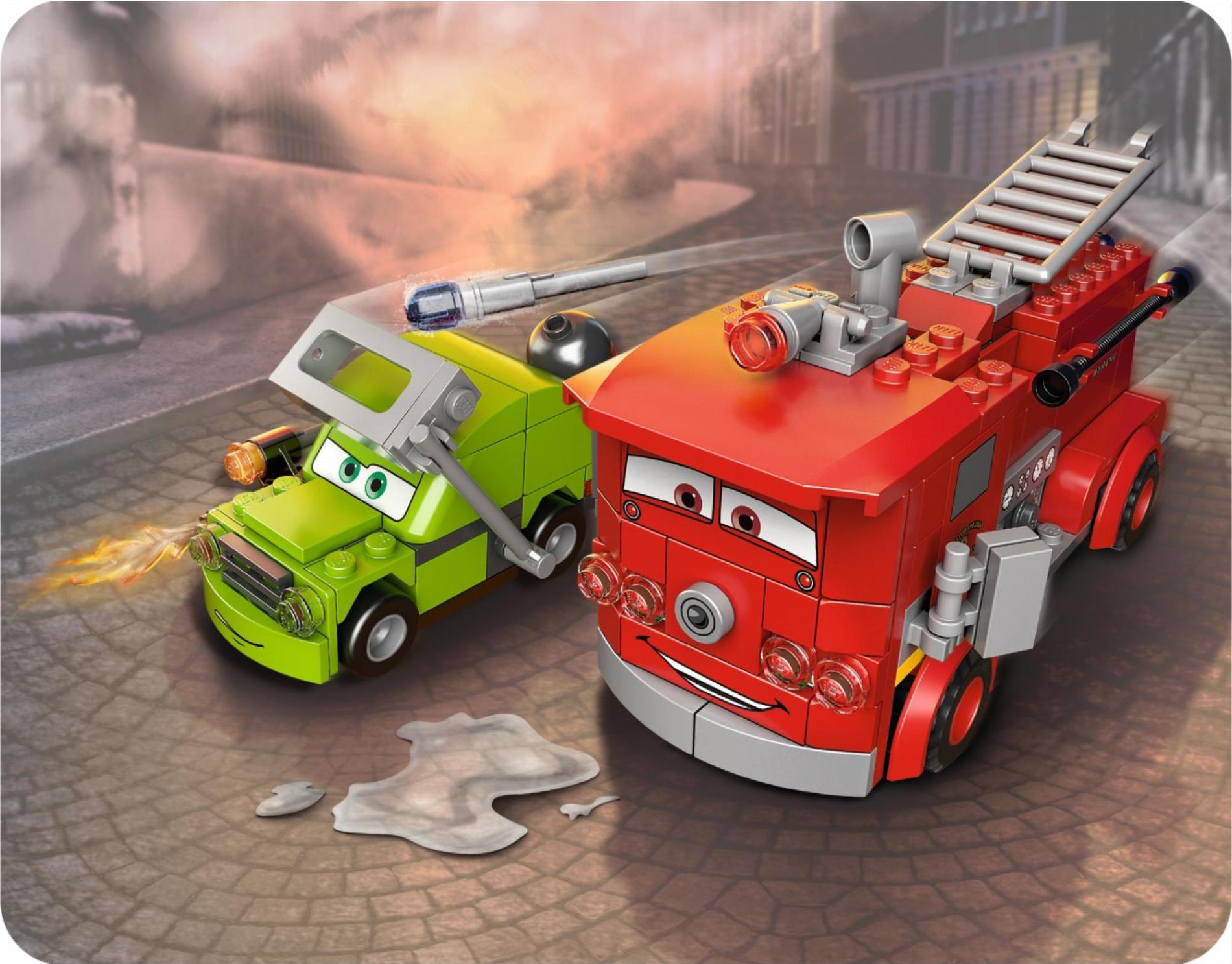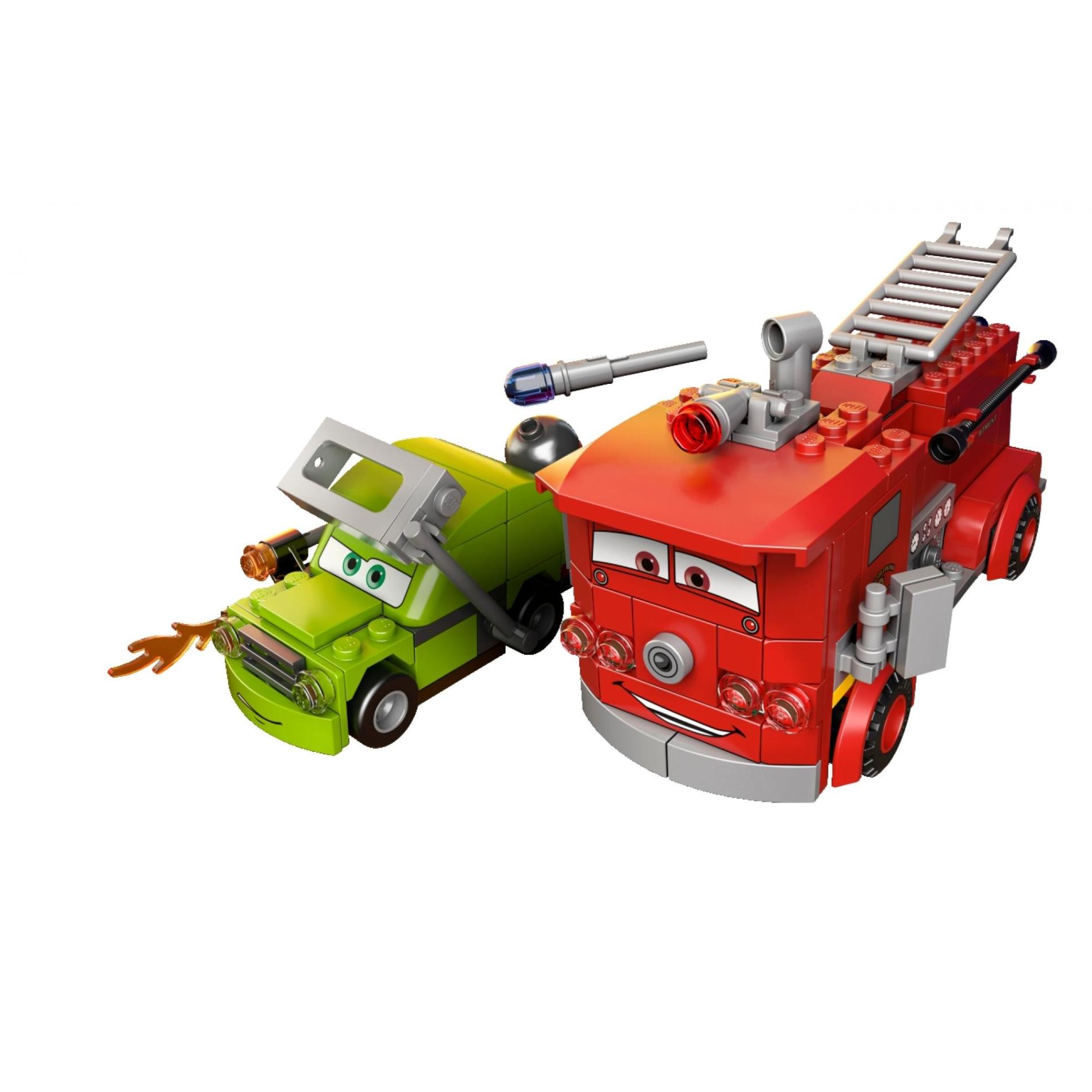 | 2 X Panel 1 x 2 x 3 with Side Supports - Hollow Studs with Gray Window and 'RADIATOR SPRINGS FIRE DEPARTMENT' Pattern (Sticker) - Set 9484 | Red |   |  |
