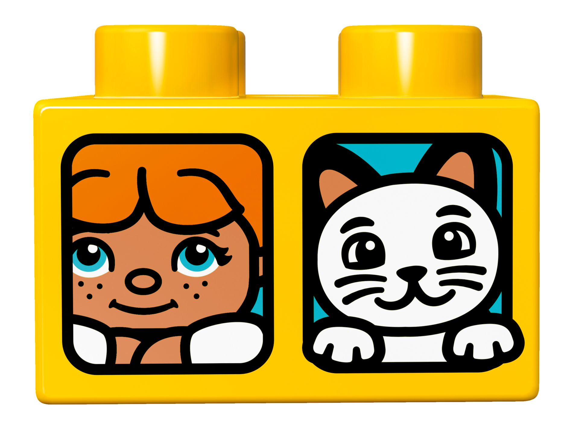 Duplo, Brick 2 x 2 with 2 Windows with Duplo Girl and Cat / Girl and Dog Pattern