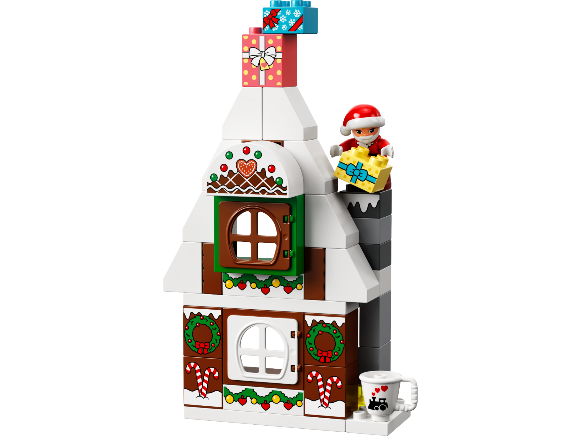 | 1 X Duplo, Brick 2 x 4 x 2 Slope Curved Double with Gingerbread Heart and Green and Red Balls Pattern | White |   |  |
