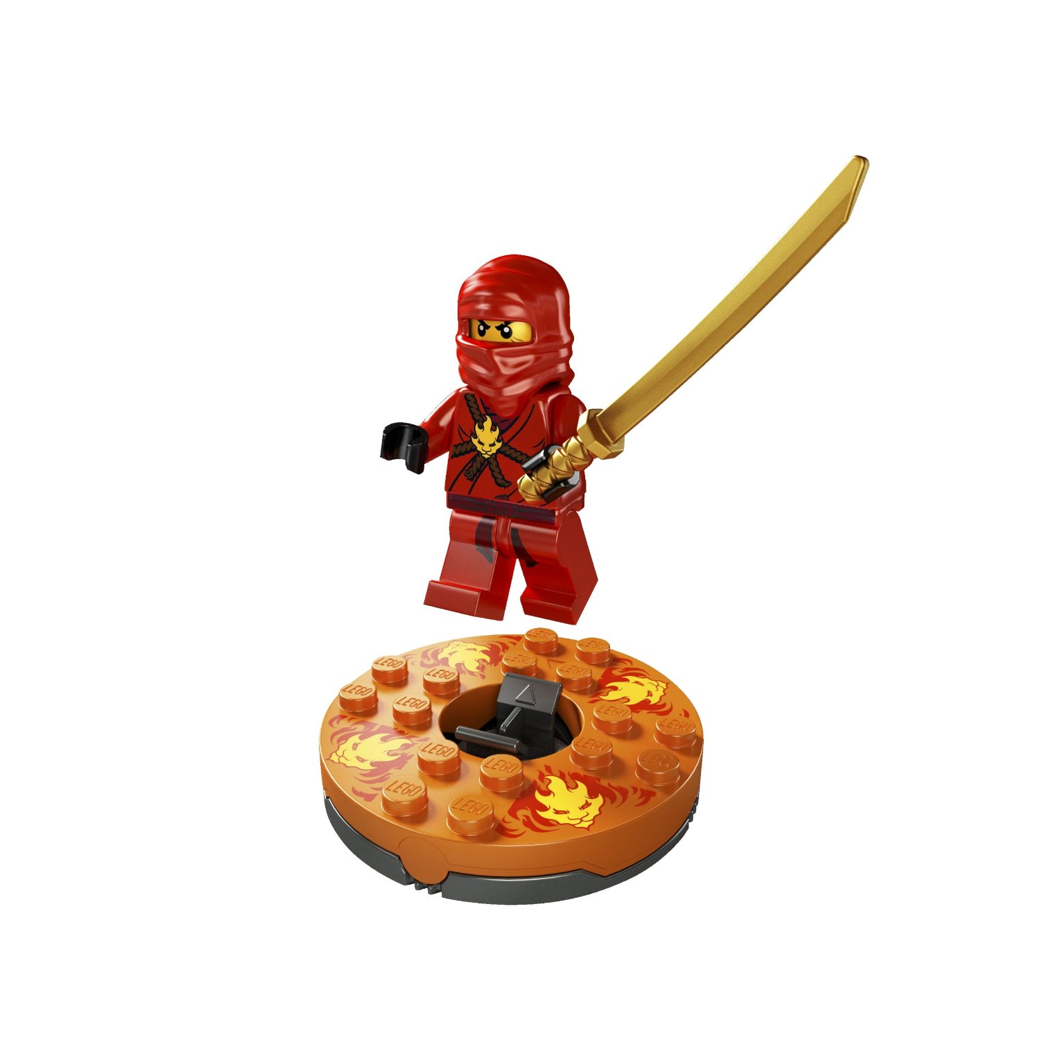 Turntable 6 x 6 Round Base with Orange Top and Bright Light Orange Faces on Red Flames Pattern (Ninjago Spinner)
