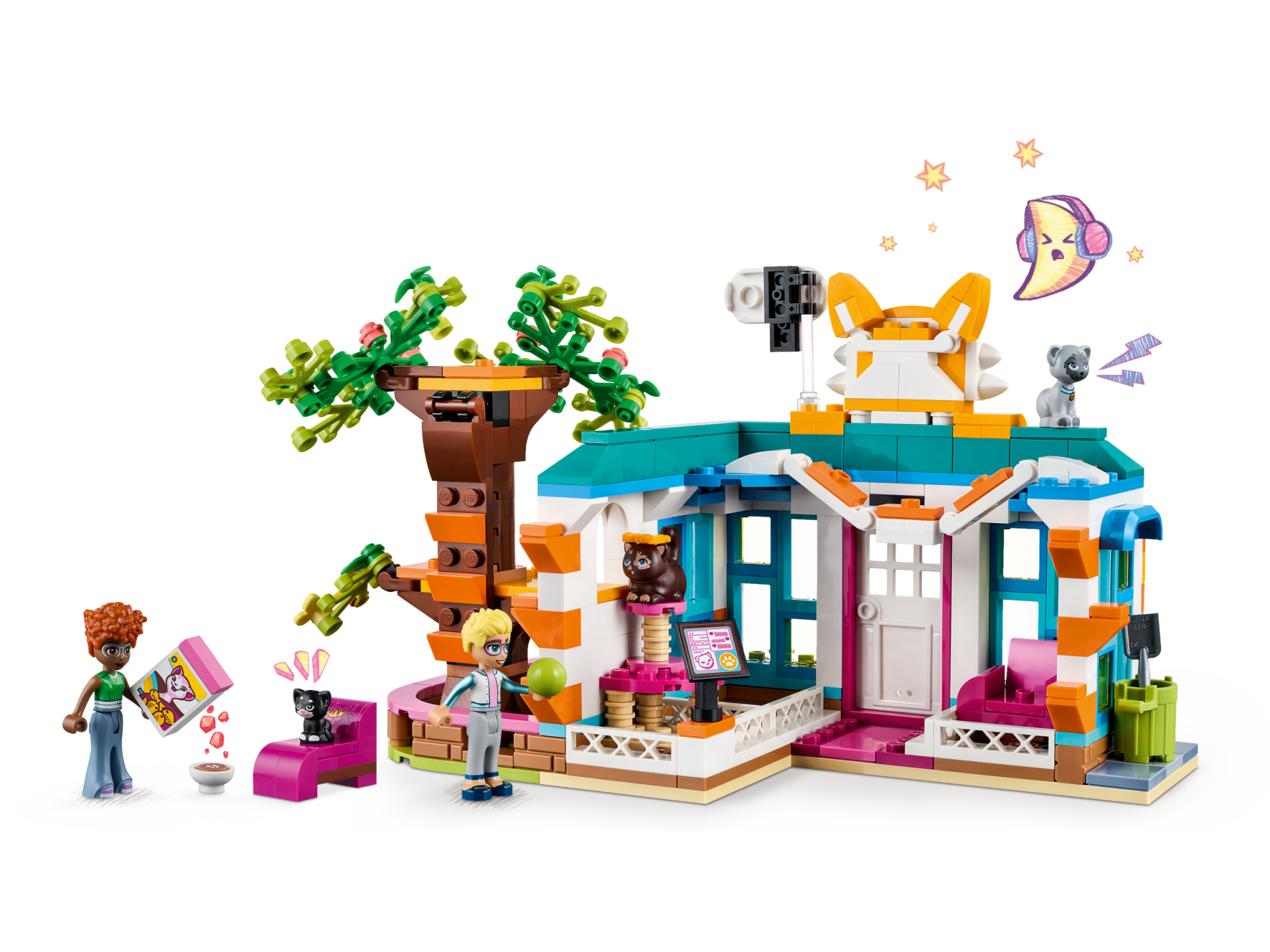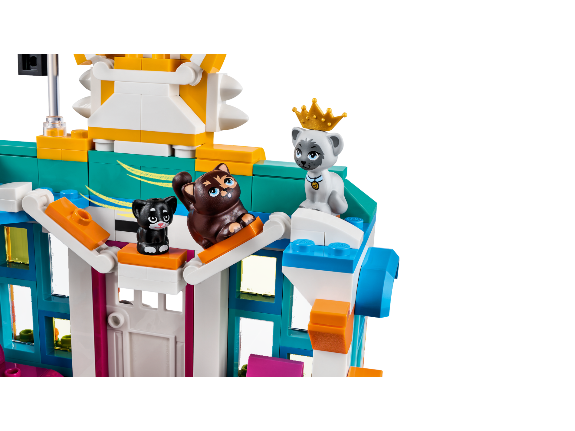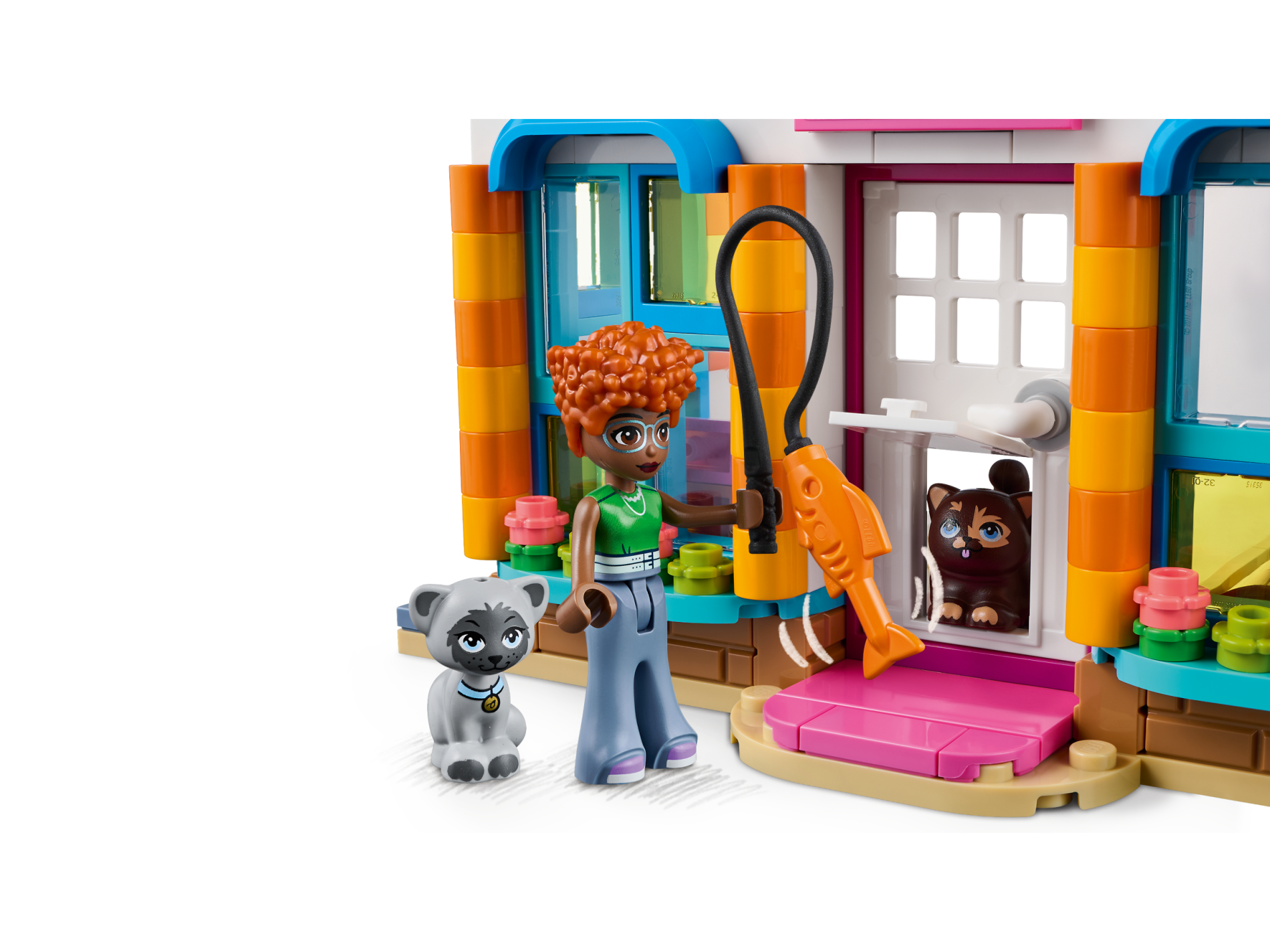 | 1 X Cat, Friends / Elves, Sitting with Bright Light Blue Eyes and Collar with Gold Tag, Black Nose, Dark Bluish Gray Ears, and Patches Pattern (Gertrude) | Light Bluish Gray |   |  |