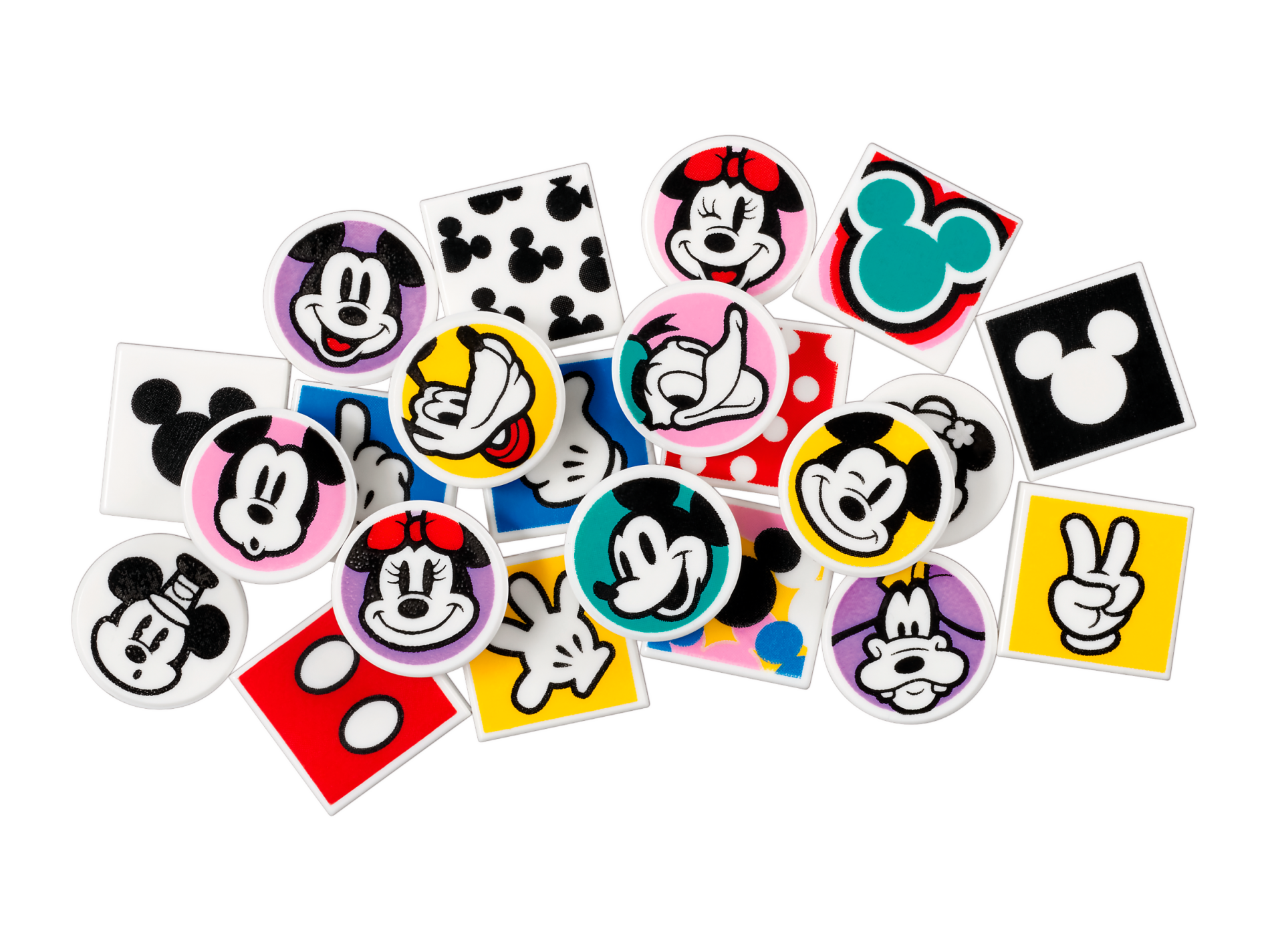 Tile 1 x 1 with Groove with Black Mickey Mouse Head Silhouettes Pattern