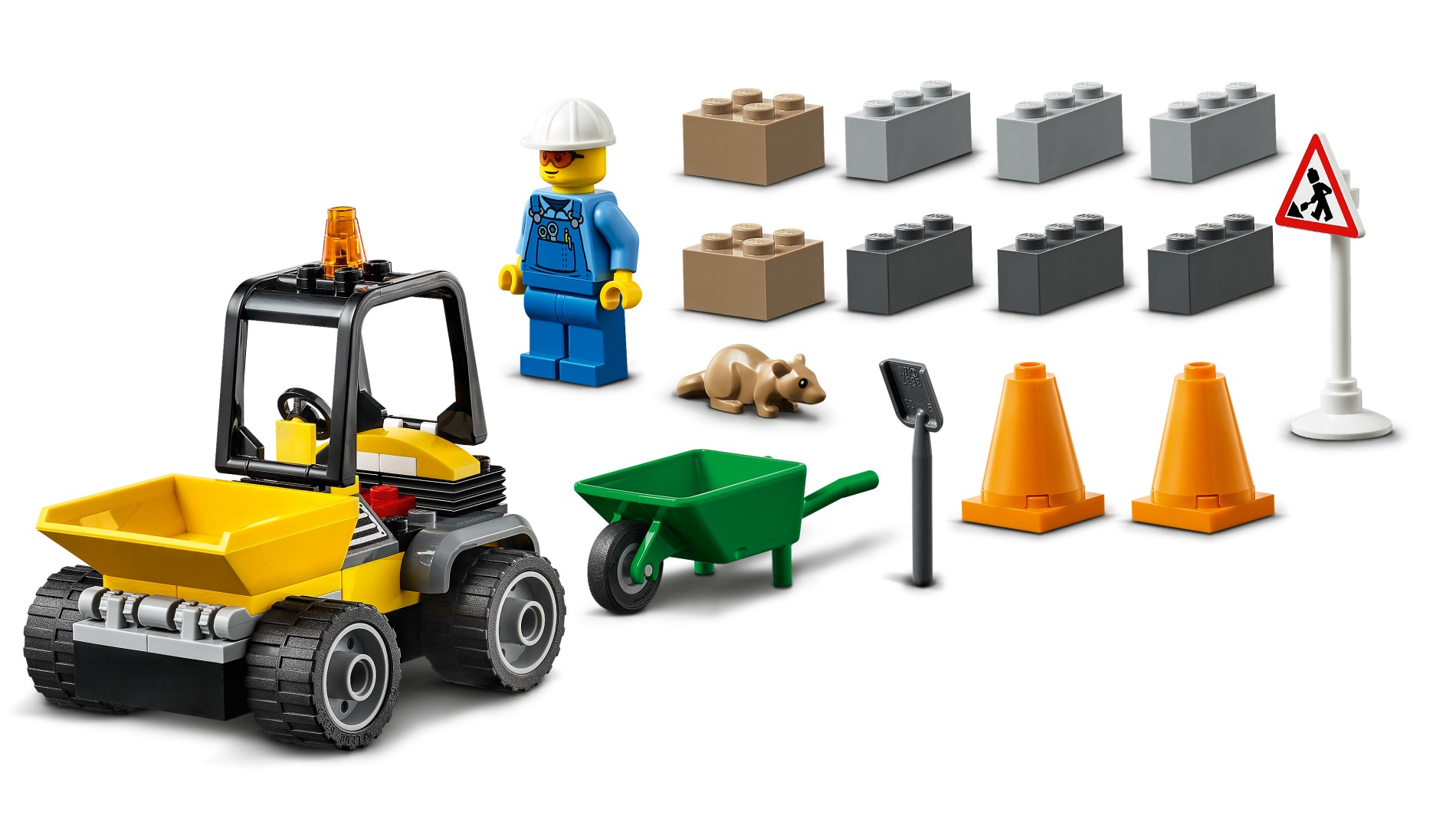 | 1 X Road Sign 2 x 2 Triangle with Open O Clip with Minifigure Worker and 1 Pile Pattern | White |   |  |