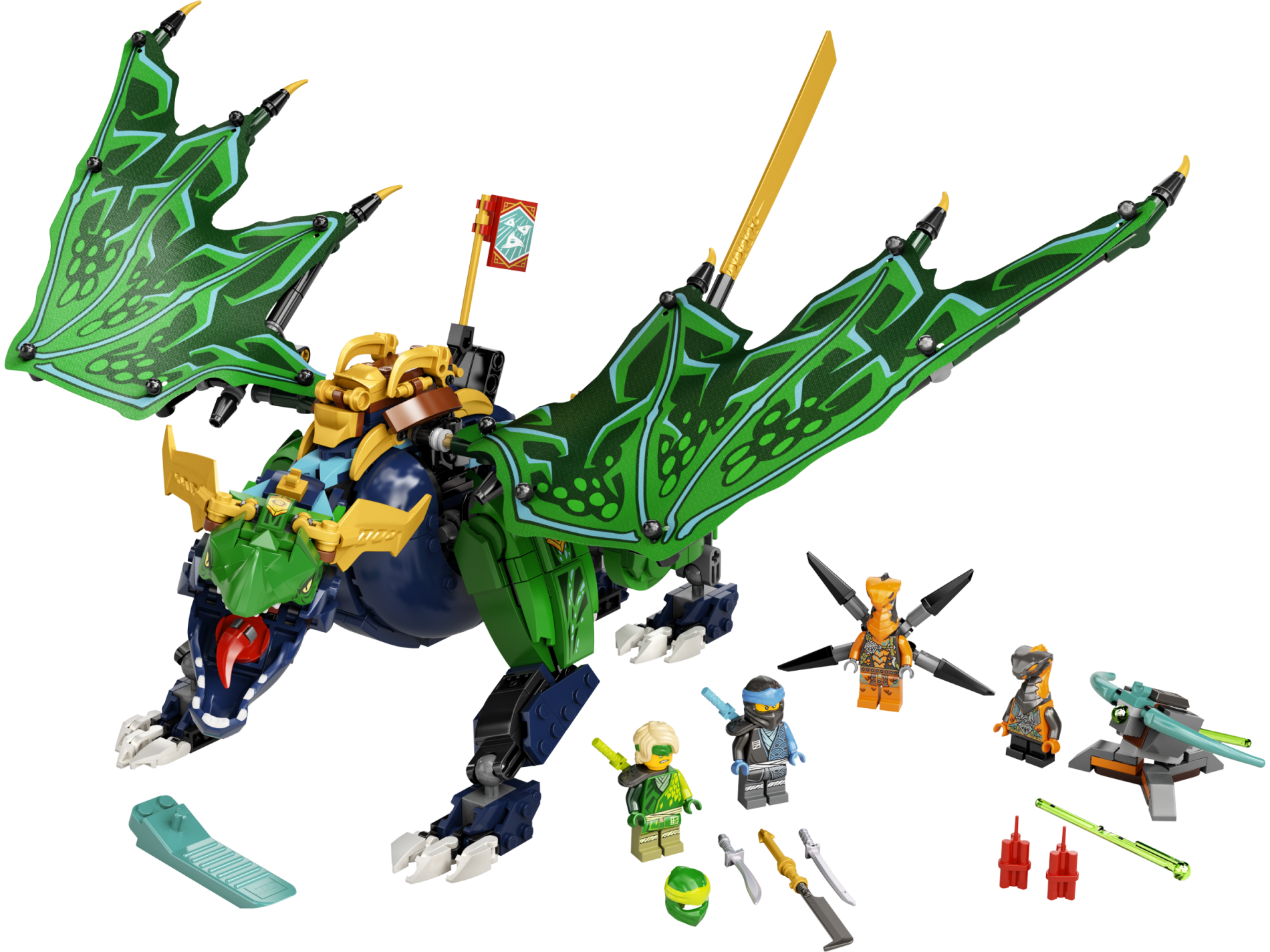 | 1 X Dragon Head (Ninjago) Jaw with Large Spike with Yellow Eyes, Dark Green Scales, and White Teeth Pattern | Bright Green |   |  |