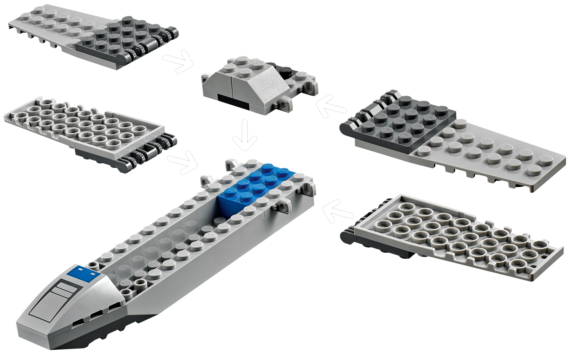 | 1 X Aircraft Fuselage Forward Bottom Angular 4 x 18 x 1 1/3 with 2 x 14 Recessed Center and 13 Holes | Light Bluish Gray |   |  |