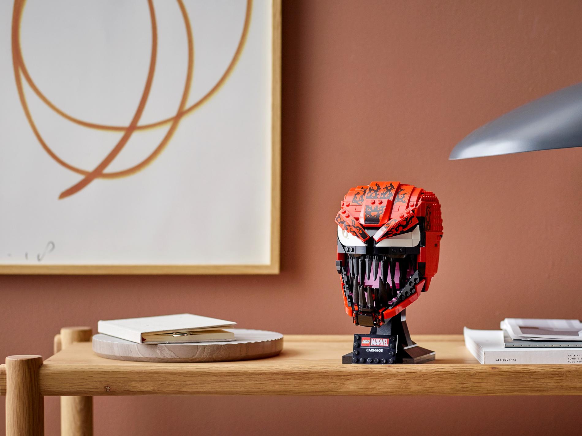 | 1 X Tile, Modified 4 x 6 with Studs on Edges with Marvel Logo and 'CARNAGE' Pattern | Black |   |  |